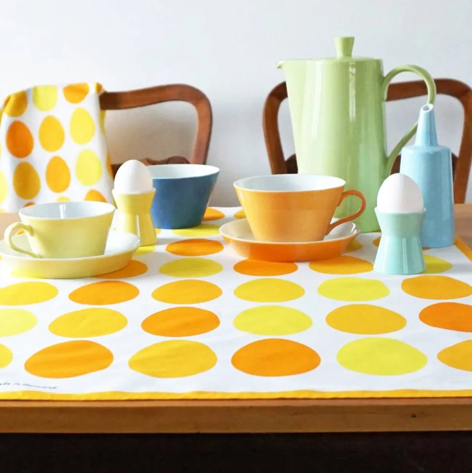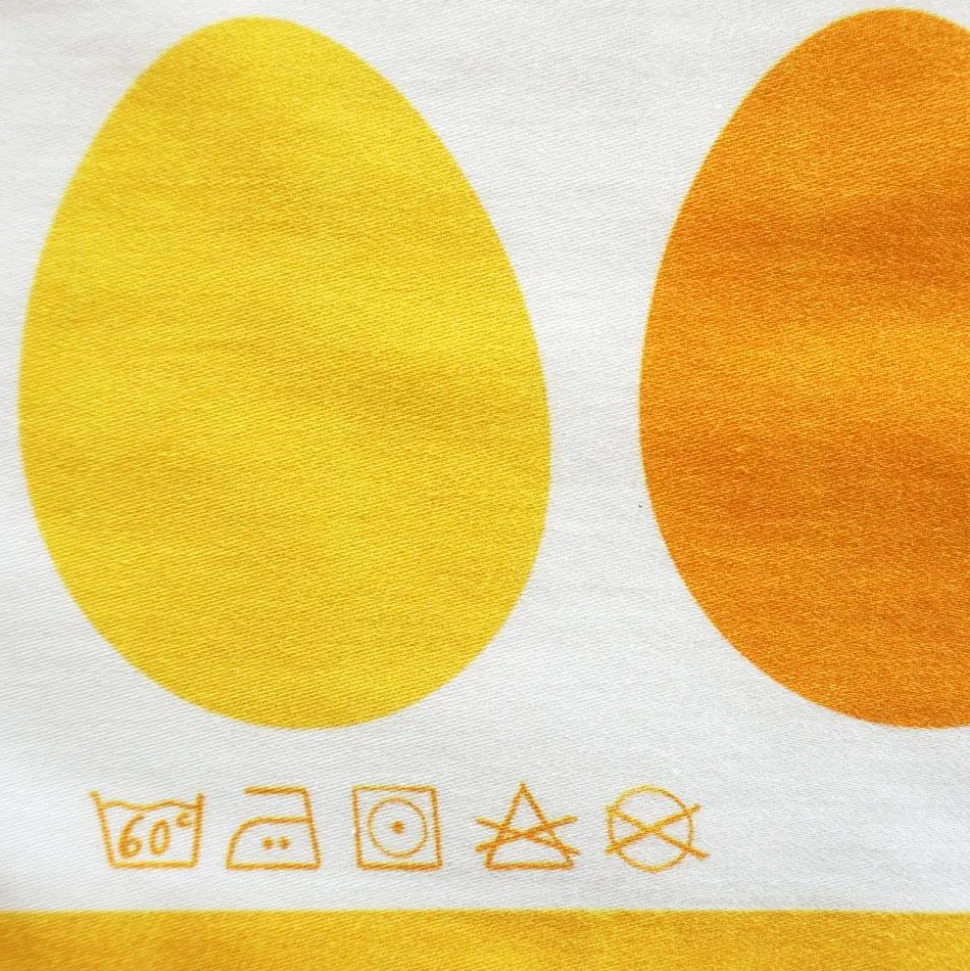 Das Eier-Motiv gibt es auch als Geschenkpapier, als Halstücher in verschiedenen Farben und Kissenbezug.