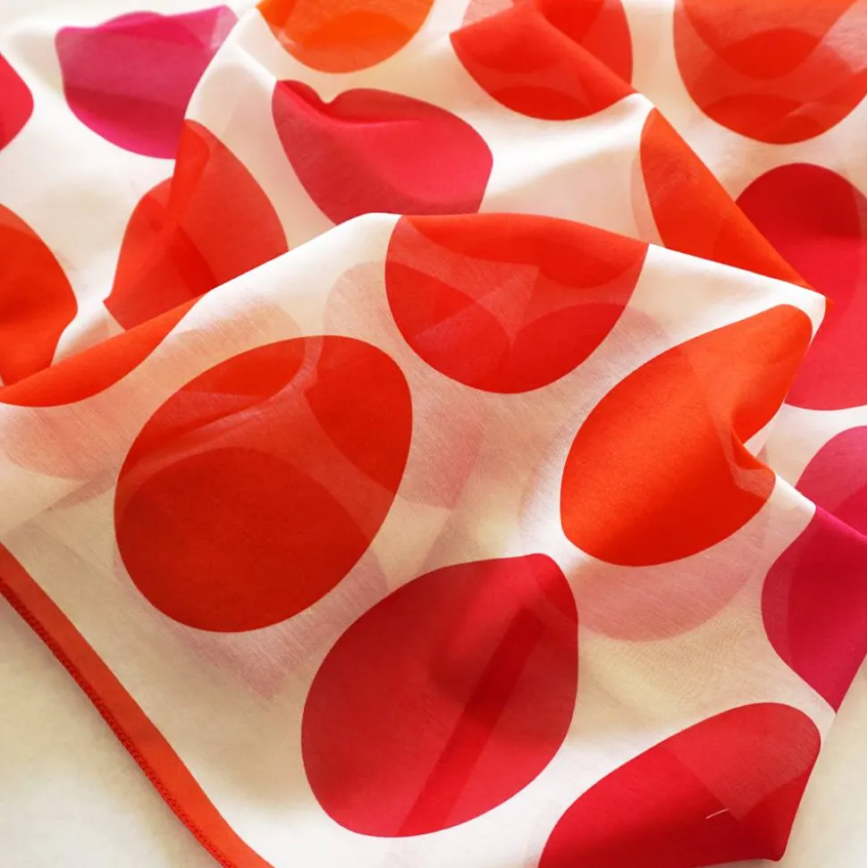 Das Tuch gibt es auch in den Farben: GELB, BLAU + GRÜN, als Kissenbezug, Tischläufer und als Geschenkpapier.