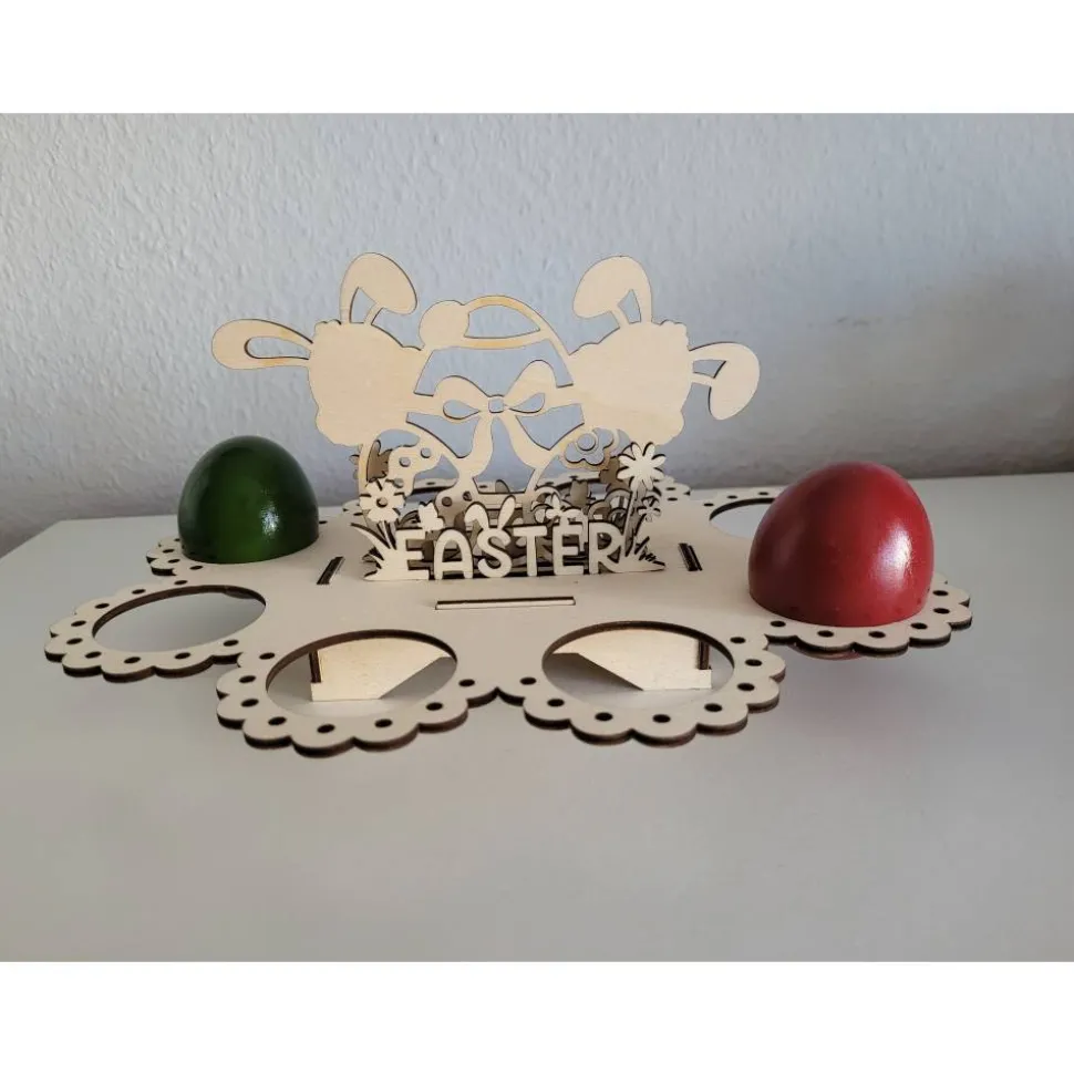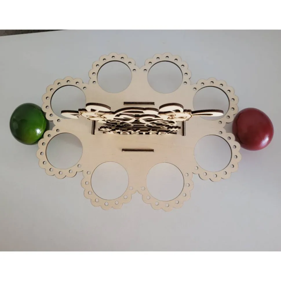 Es haben 8 bunte Eier drauf Platz.