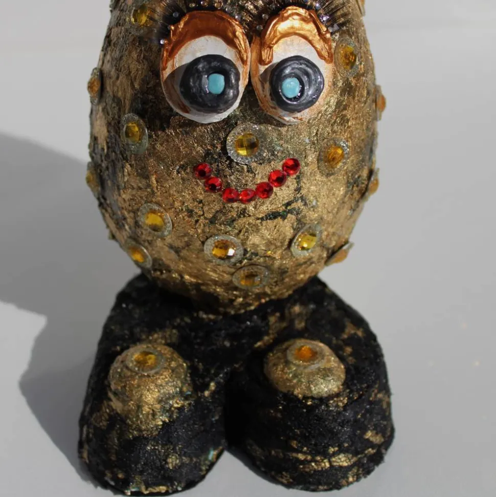 Deko-Ei mit Acrylfarben und Blattmetall liebevoll gestaltet, witziges Künstler-Ei der etwas anderen Art!