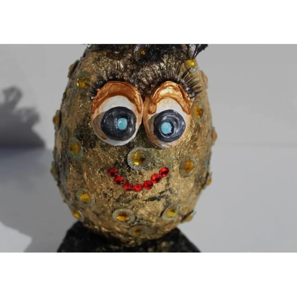 Deko-Ei mit Acrylfarben und Blattmetall liebevoll gestaltet, witziges Künstler-Ei der etwas anderen Art!