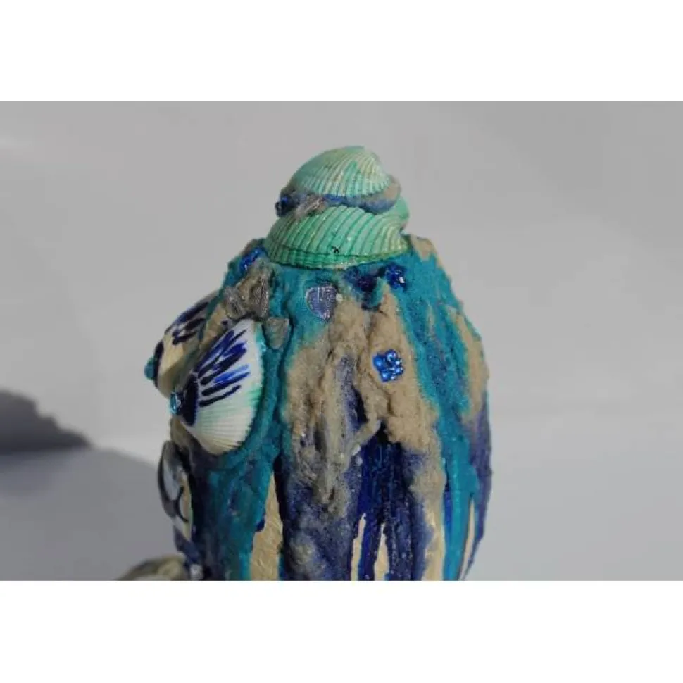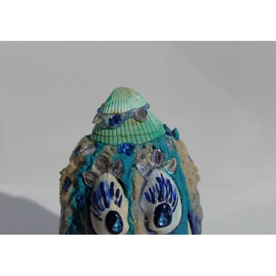 Deko-Ei mit Acrylfarben, Modelliermasse und Muscheln liebevoll gestaltet, witziges Künstler-Ei der etwas anderen Art!