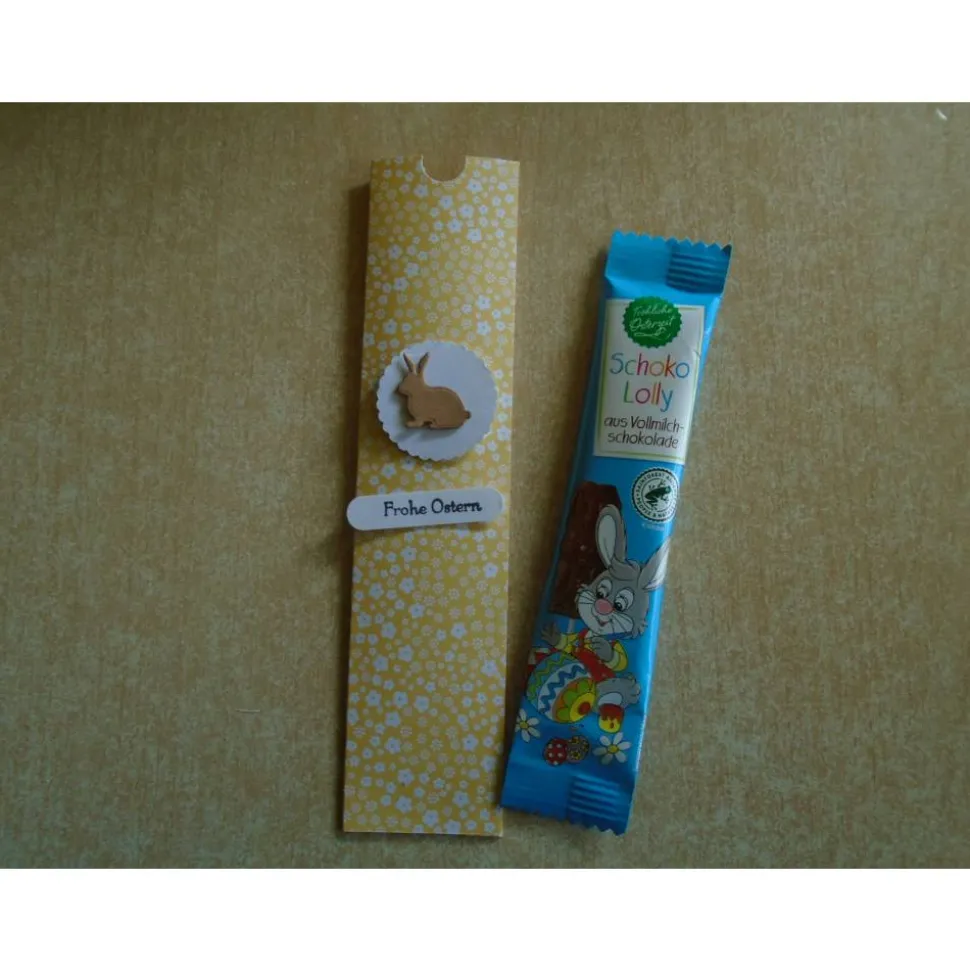 dieses hübsche Ostergeschenk Ostern mit Hasen,kann man als Schoko-lolli Oder auch als Geldgeschenk verschenken …