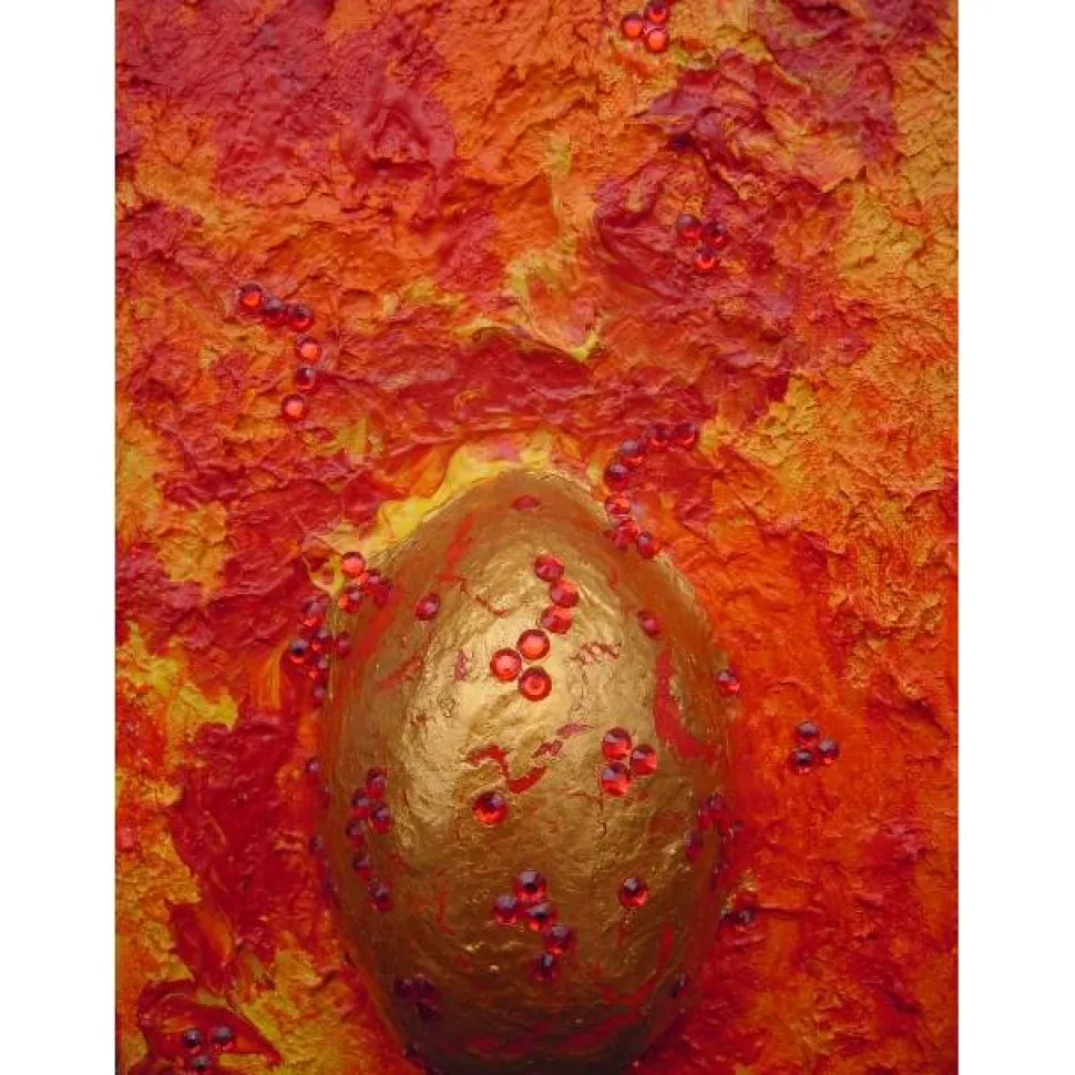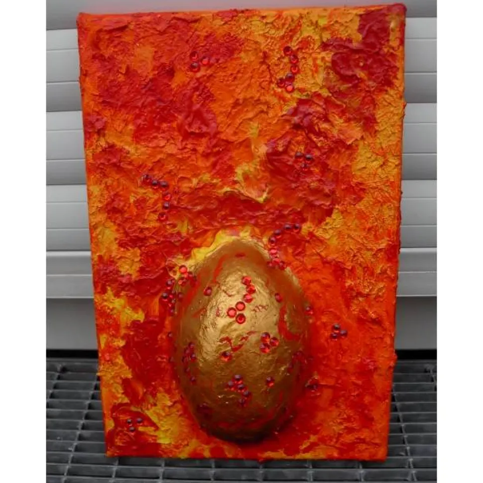 Keinen Platz für Oster-Deko? Jetzt schon ;), denn dieses Ei können Sie an der Wand platzieren. Verrückte, abstrakte Gestaltung auf einem Keilrahmen mit integriertem Halb-Osterei. 🙂