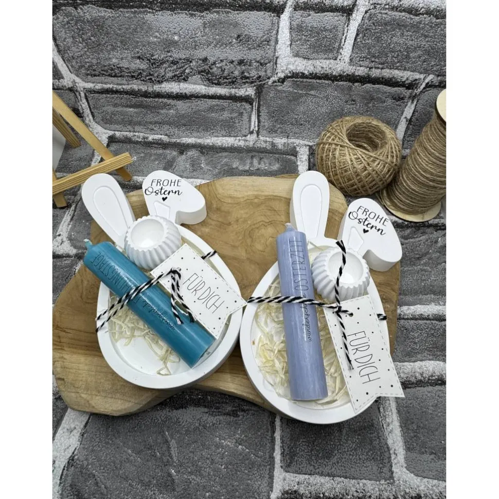 Ein hübsches kleines Ostertablett mit Kerze und Kerzenhalter.