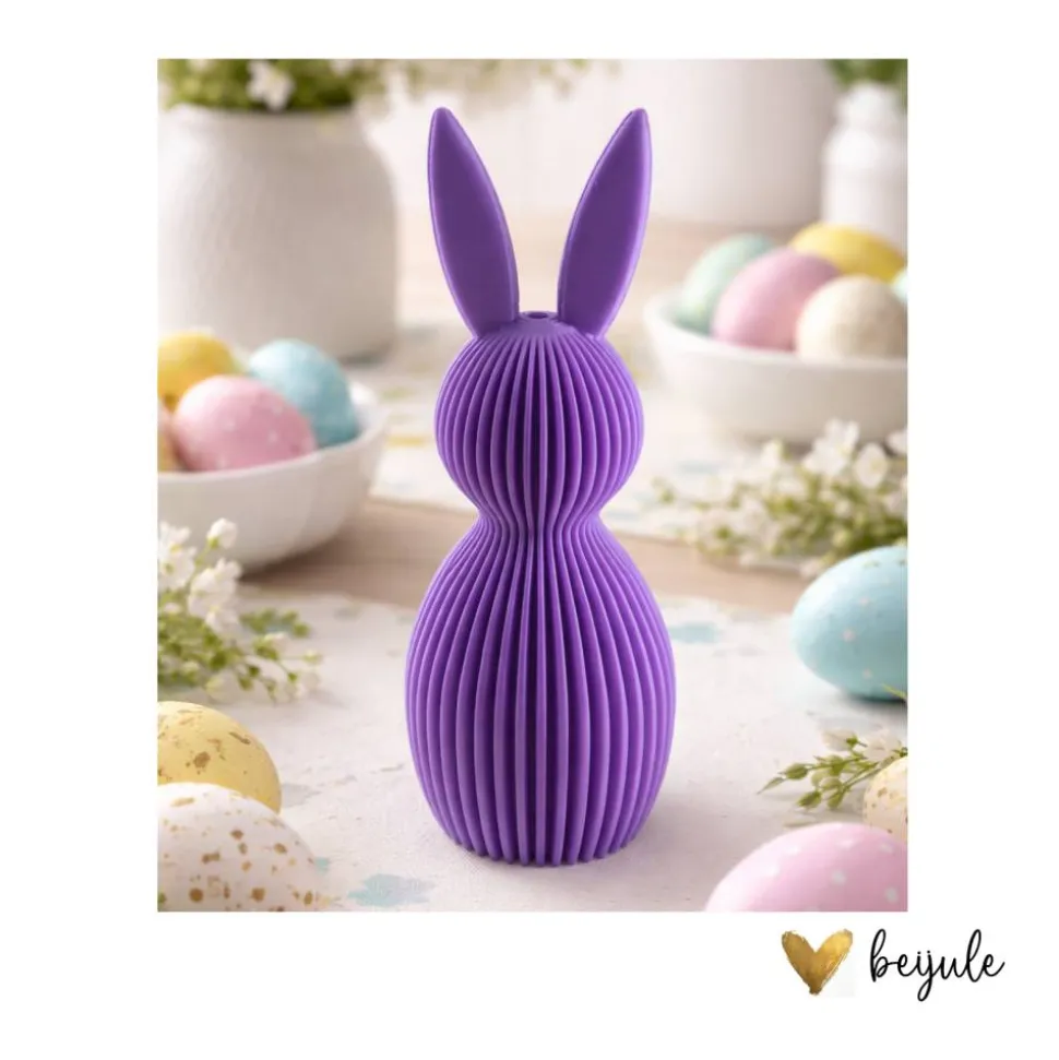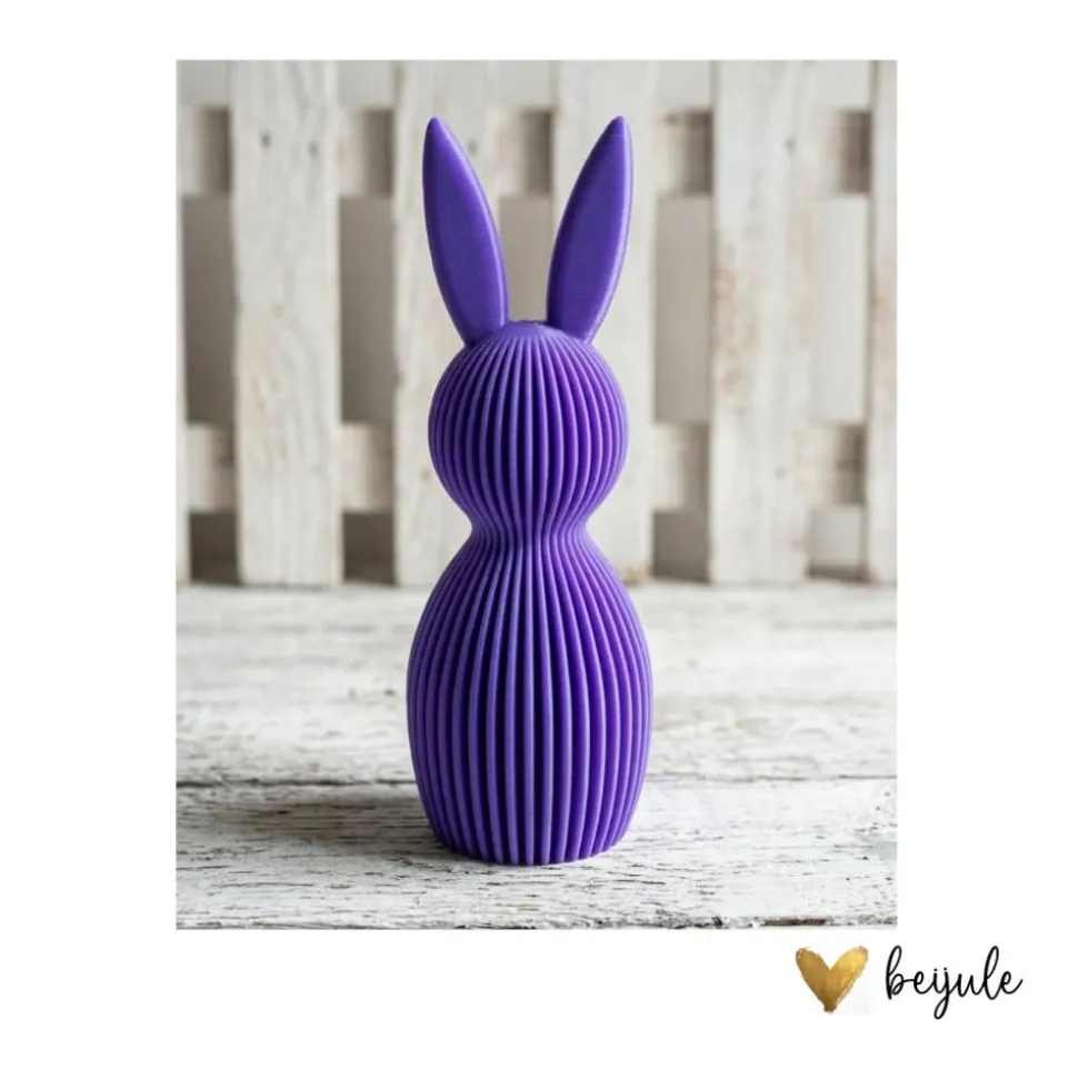 Verleihen Sie Ihrer Osterdekoration einen besonderen Akzent mit diesem stilvollen Osterhasen aus dem 3D-Drucker. Die harmonische Formgebung und die sanfte Farbgebung in Lila machen ihn zu einem zeitgemäßen Blickfang – perfekt für Tischdekoration, Fensterbank oder Frühlingsarrangements.