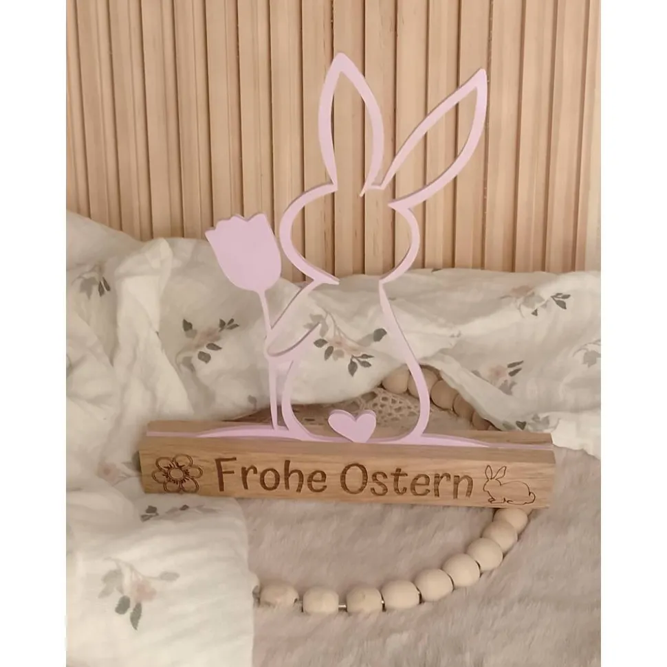 Der Osterhase eignet sich mit seinem minimalistischen Design ausgezeichnet als Tischdeko, Fensterdeko oder auch als kleines Mitbringsel zum Osterfest.