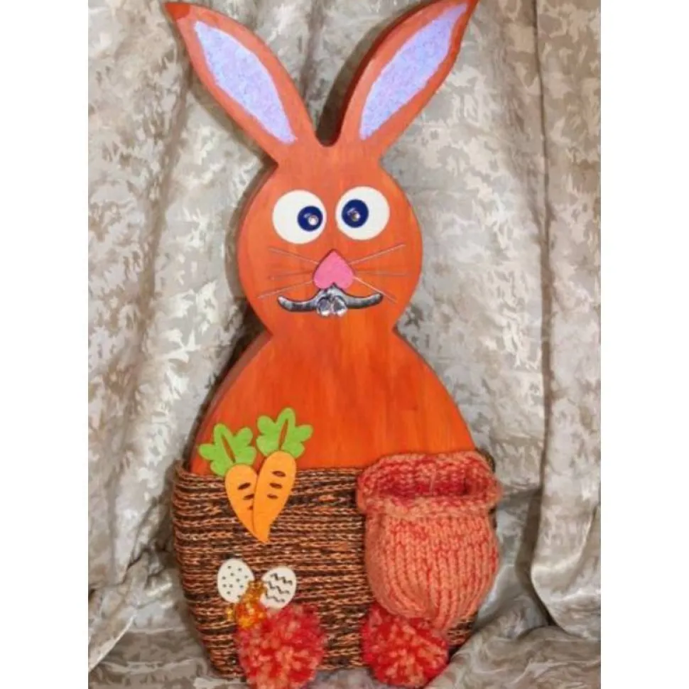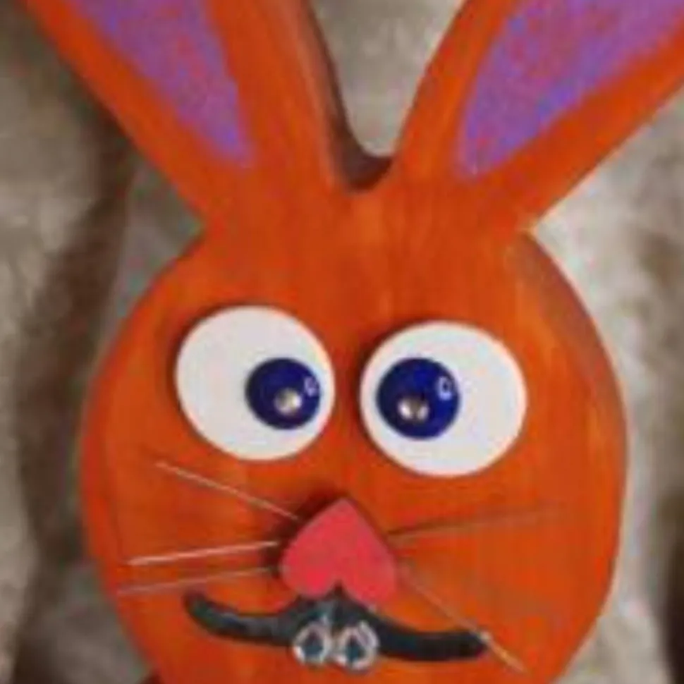 Zauberhafter Osterhase, aus Holz gefertigt und mit Acrylfarben in Orange und Pink bemalt.