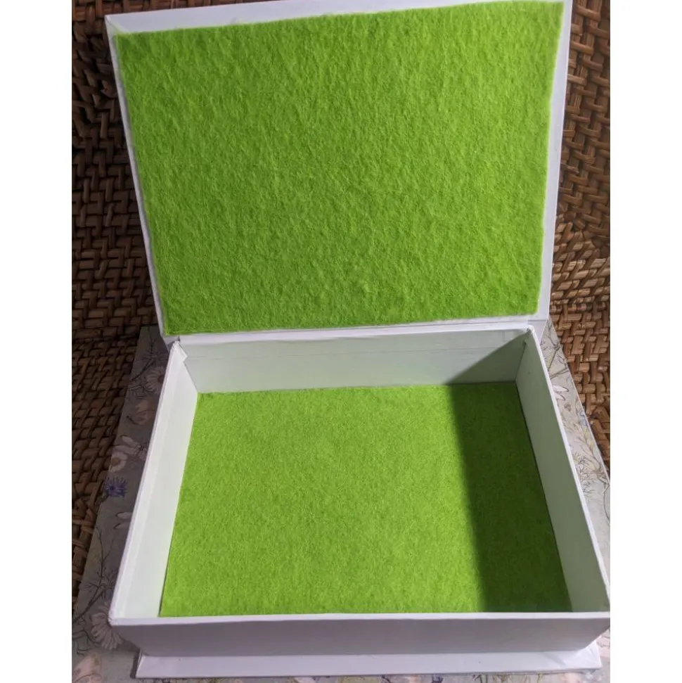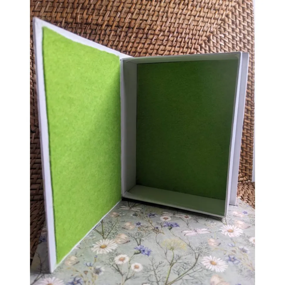 Die Klappdeckel-Box ist aus Karton.