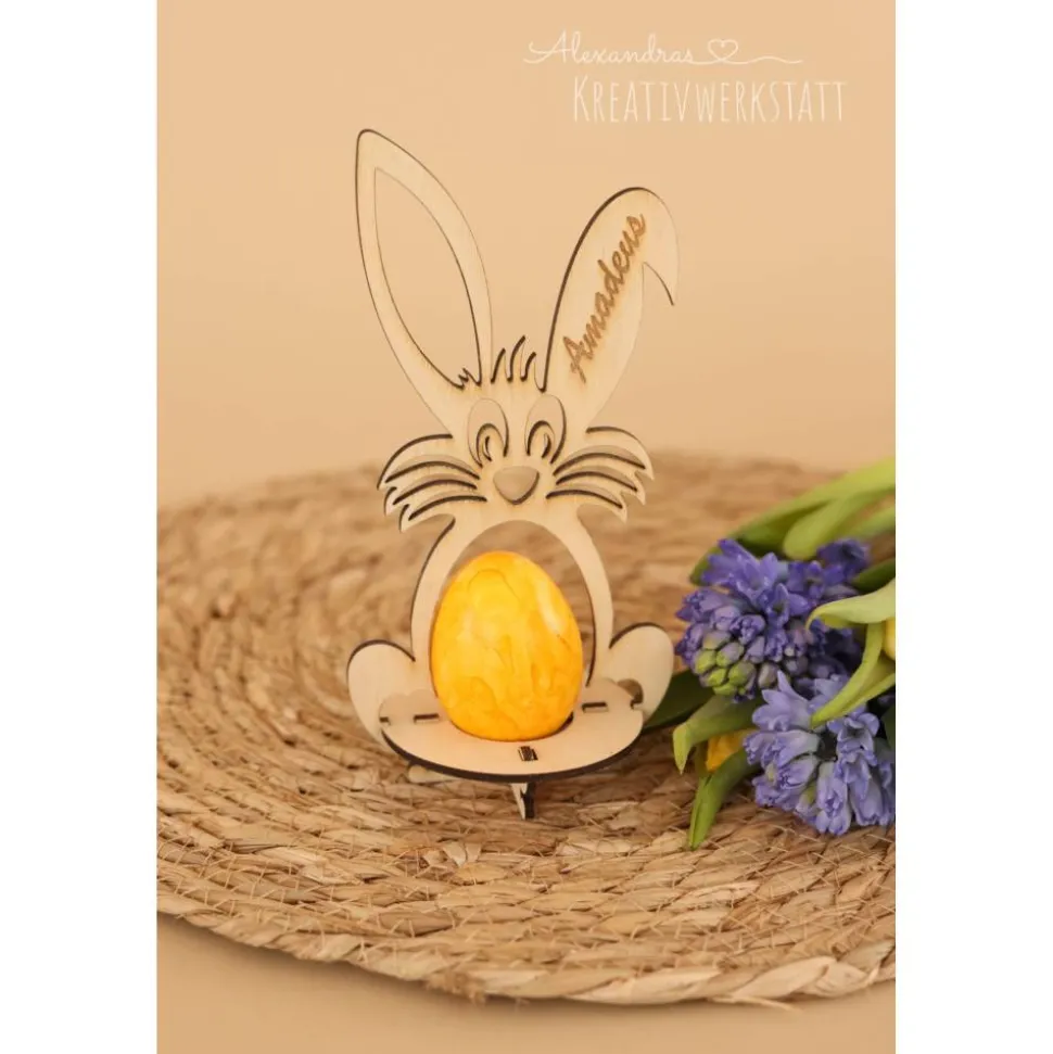 Durch die super Passform kann der Hase als Eierhalter für ein bemaltes Osterei oder auch mit einem Überraschungsei überreicht werden. Die Kinder werden ihn lieben.