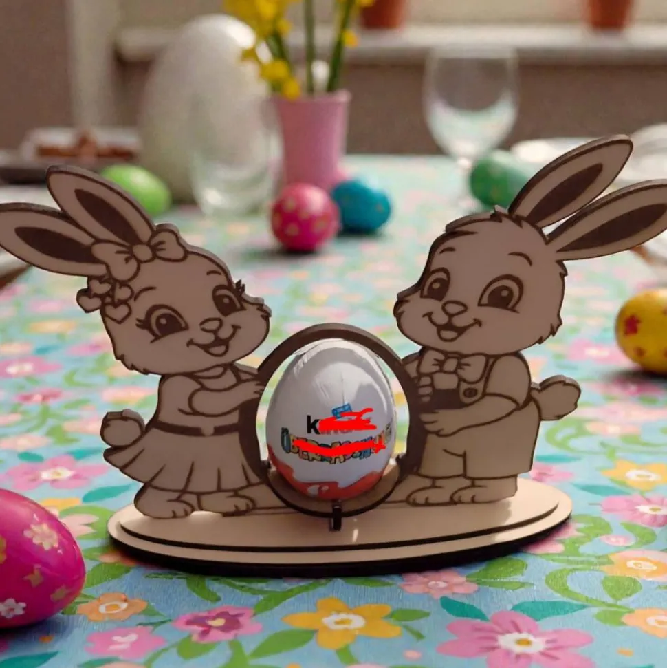 Osterhasen aus Holz als Eierhalter