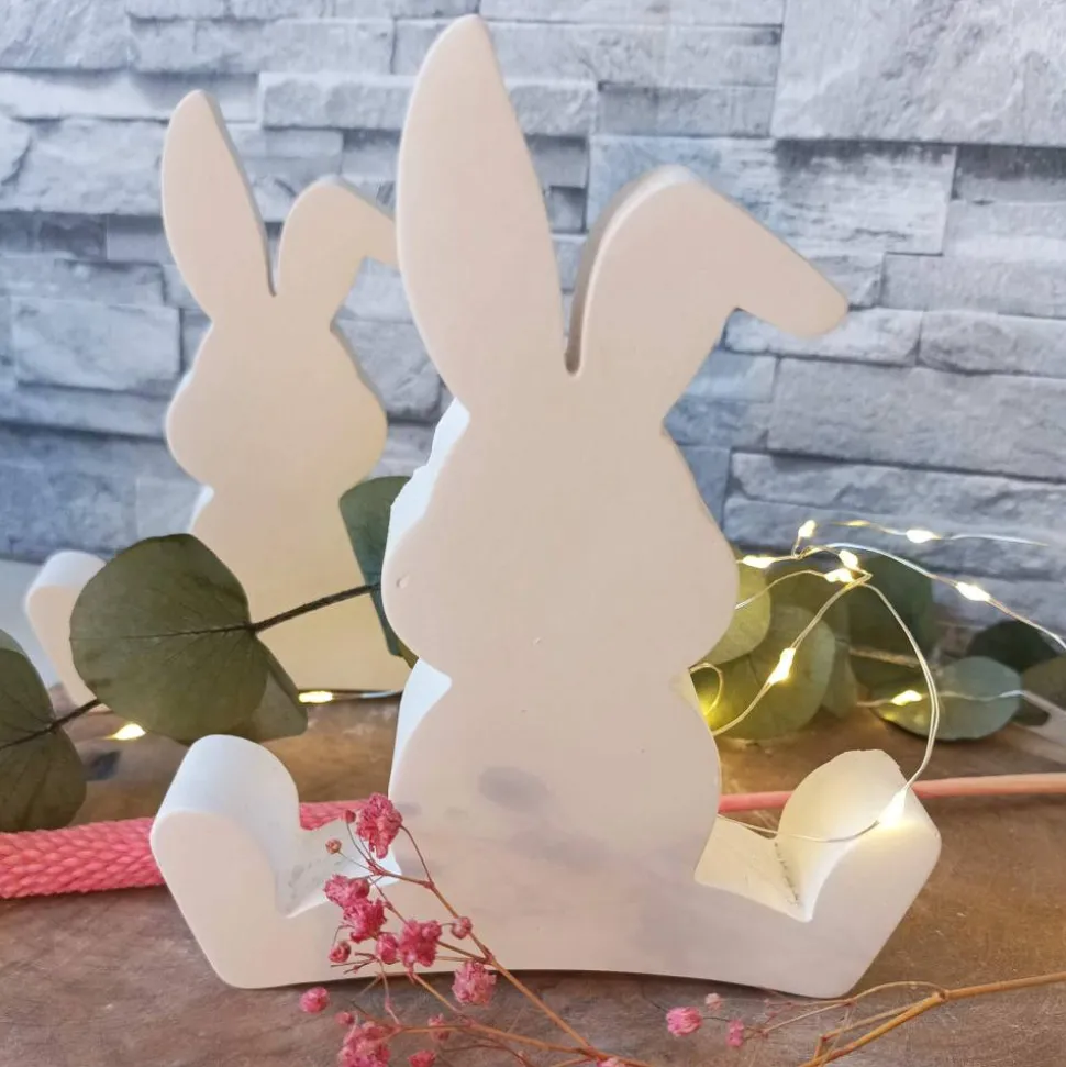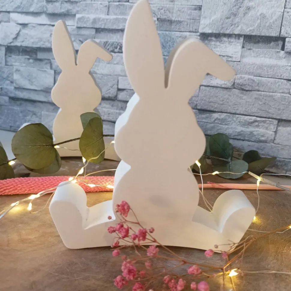 Jede meiner Osterhasen Figuren wird liebevoll von Hand gefertigt und ist somit ein einzigartiges Unikat. Dabei verwende ich Raysin oder Keraflott, ein feines, geruchsneutrales Gießpulver auf Gipsbasis. Die leichten Unregelmäßigkeiten und Lufteinschlüsse, die aufgrund des Materials auftreten können, sind charakteristisch für Dekorationen aus Raysin und verleihen jedem Stück seinen eigenen Charme. Du kannst sicher sein, ein ganz besonderes und individuelles Dekorationsobjekt zu erhalten, das sich von Massenware abhebt.
