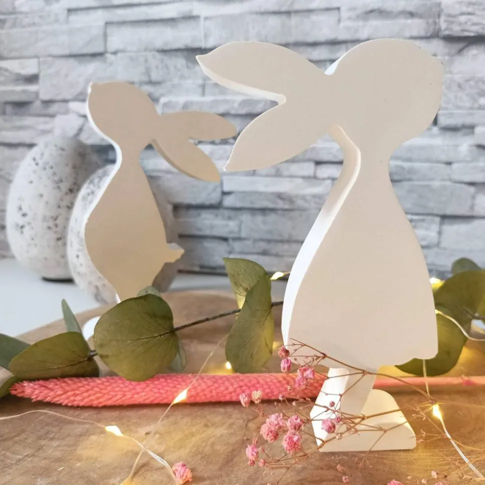 Meine Raysin Hasen sind in zwei verschiedenen Varianten erhältlich, einmal als liebenswerte Hasenmädchen und einmal als charismatische Hasenjungen. Mit einer Größe von etwa 8 x 2,8 x 15 cm (Breite x Tiefe x Höhe) sind sie groß genug, um als Blickfang auf Tischen, Regalen oder Fensterbänken zu dienen und den Frühling in deinem Zuhause zu begrüßen.