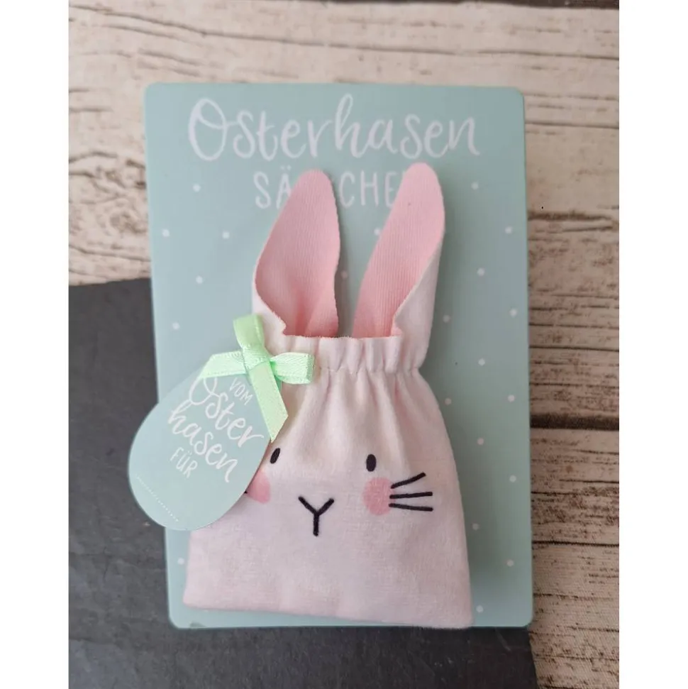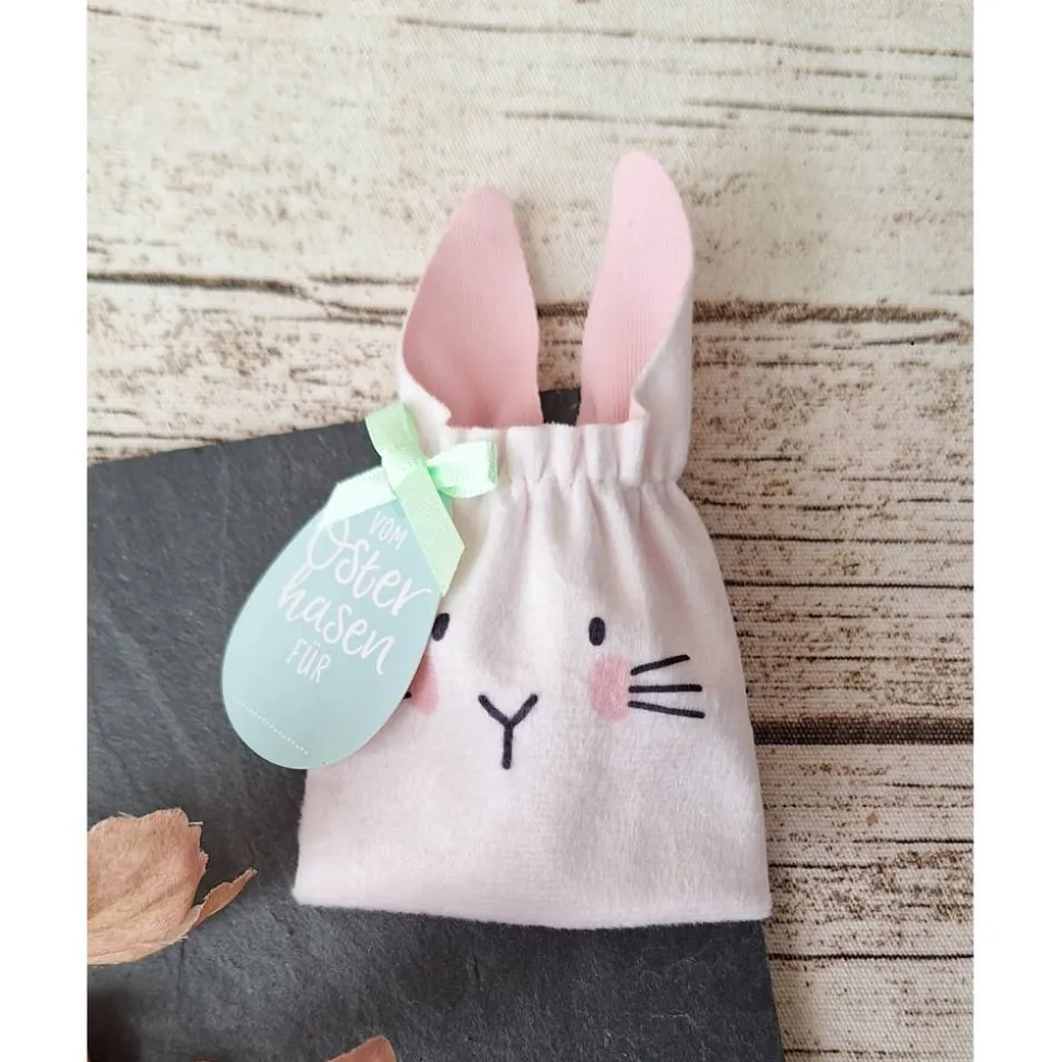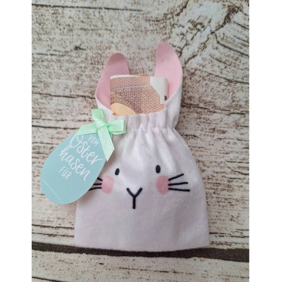Das Säckchen ist perfekt, um Geld oder andere kleine Aufmerksamkeiten wie Schokoeier zu verstecken. Außerdem hat es ein kleines Etikett zum beschriften.