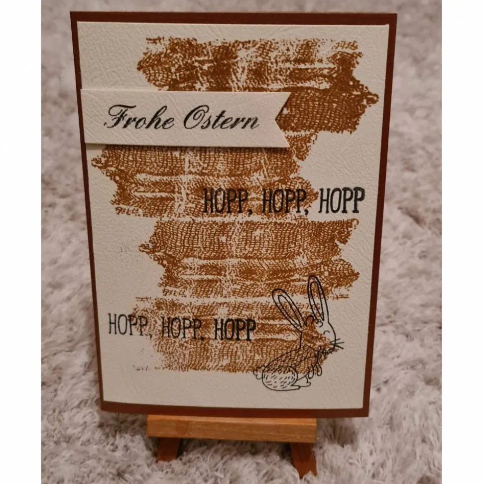 Als Motiv wurde ein schlichter Hintergrund und Motive zu Ostern gestempelt.