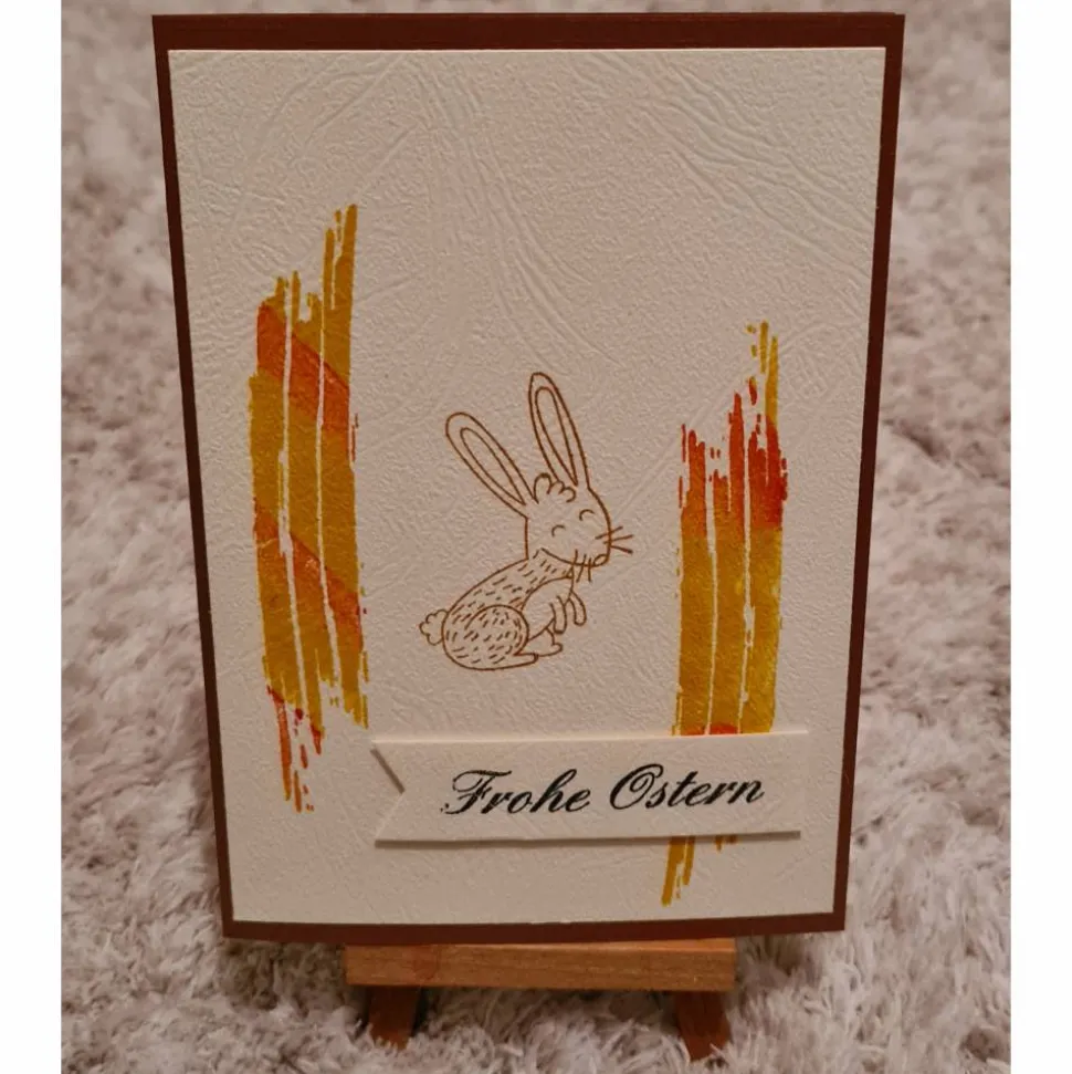Als Motiv wurden schlichte bunte Streifen und ein Hase gestempelt.