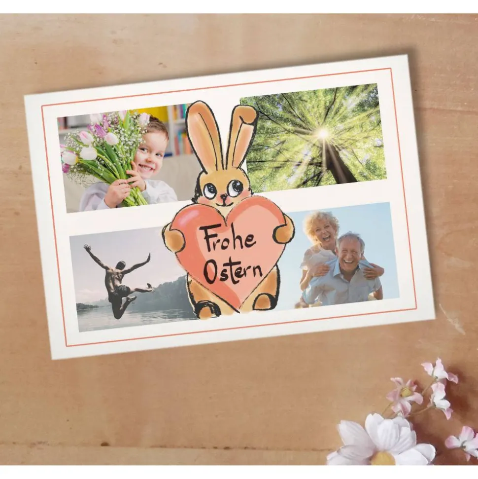 Verschicken Sie heuer personalisierte Osterkarten. Ob ausgedruckt oder per Whatsapp bzw. Social Media.