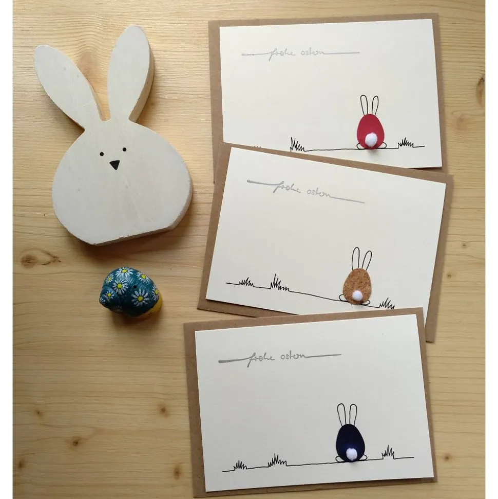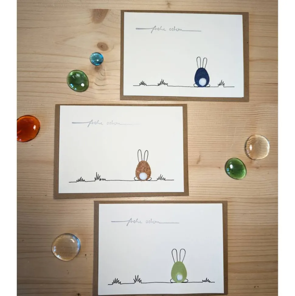 Jede Karte ist mit viel Liebe handgefertigt und unterscheidet sich leicht, u.a. in der Farbe des Hasen. Die Fotos zeigen Beispiele. Die Hasenfarbe können sie im Bestellprozess auswählen.