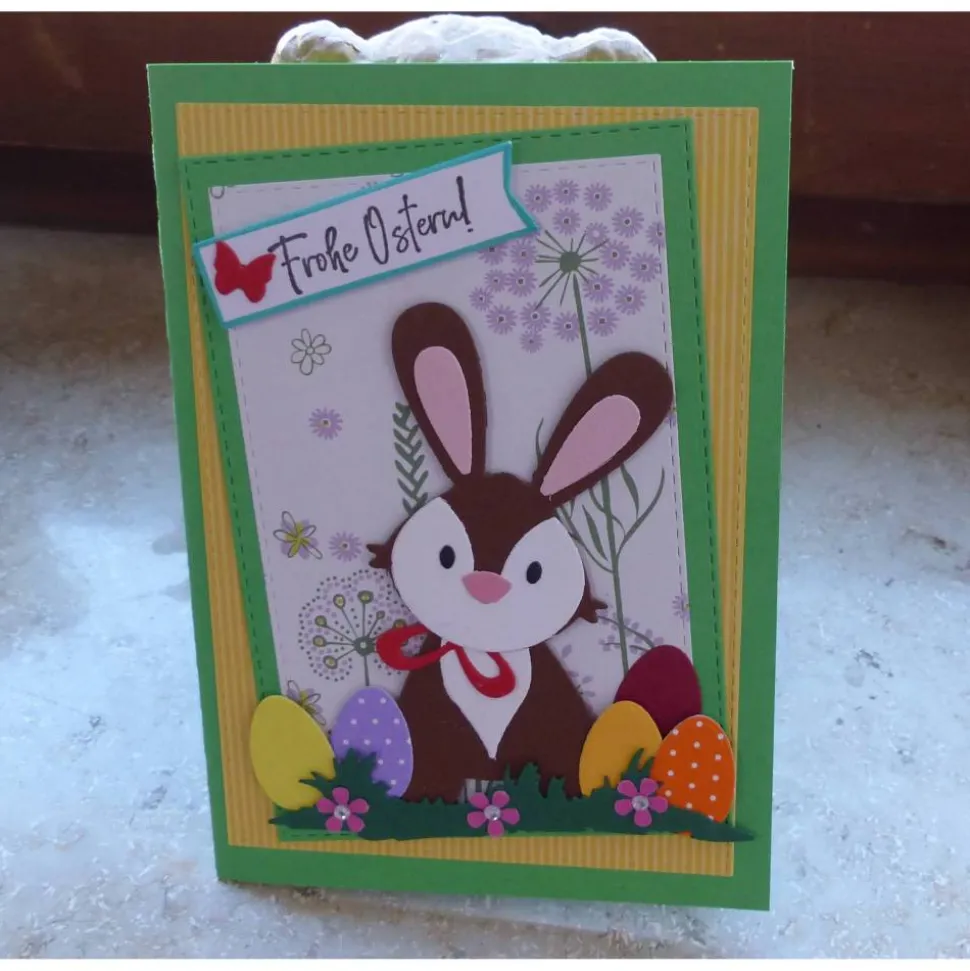 verziert mit einem Hasen und Ostereiern,kleine Blümchen