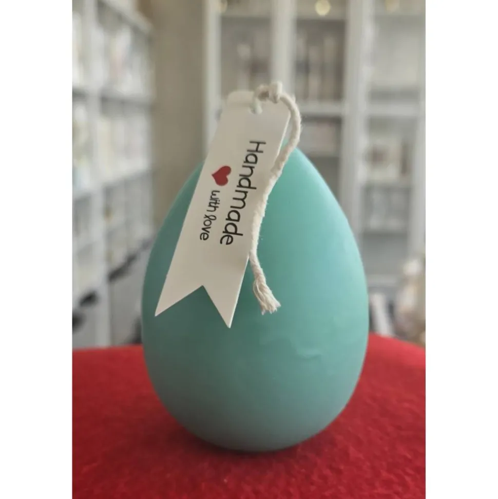 Die schöne Osterkerze im Form eines Ostereies ist 7,0×9,5 cm groß und fügt sich perfekt in Ihre Tischdeko oder Gestecke ein.