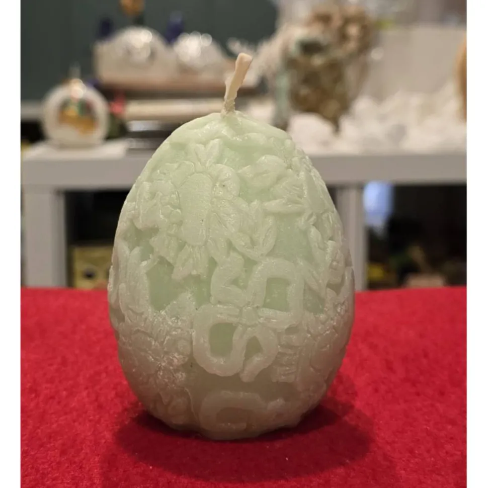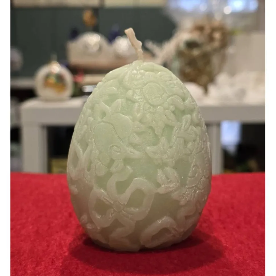 Die schöne Osterkerze im Form eines Ostereies ist 6,5×8,0 cm groß und fügt sich perfekt in Ihre Tischdeko oder Gestecke ein.