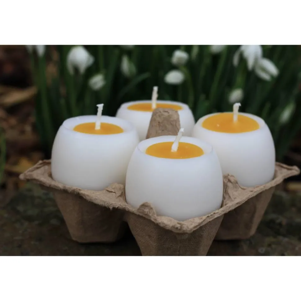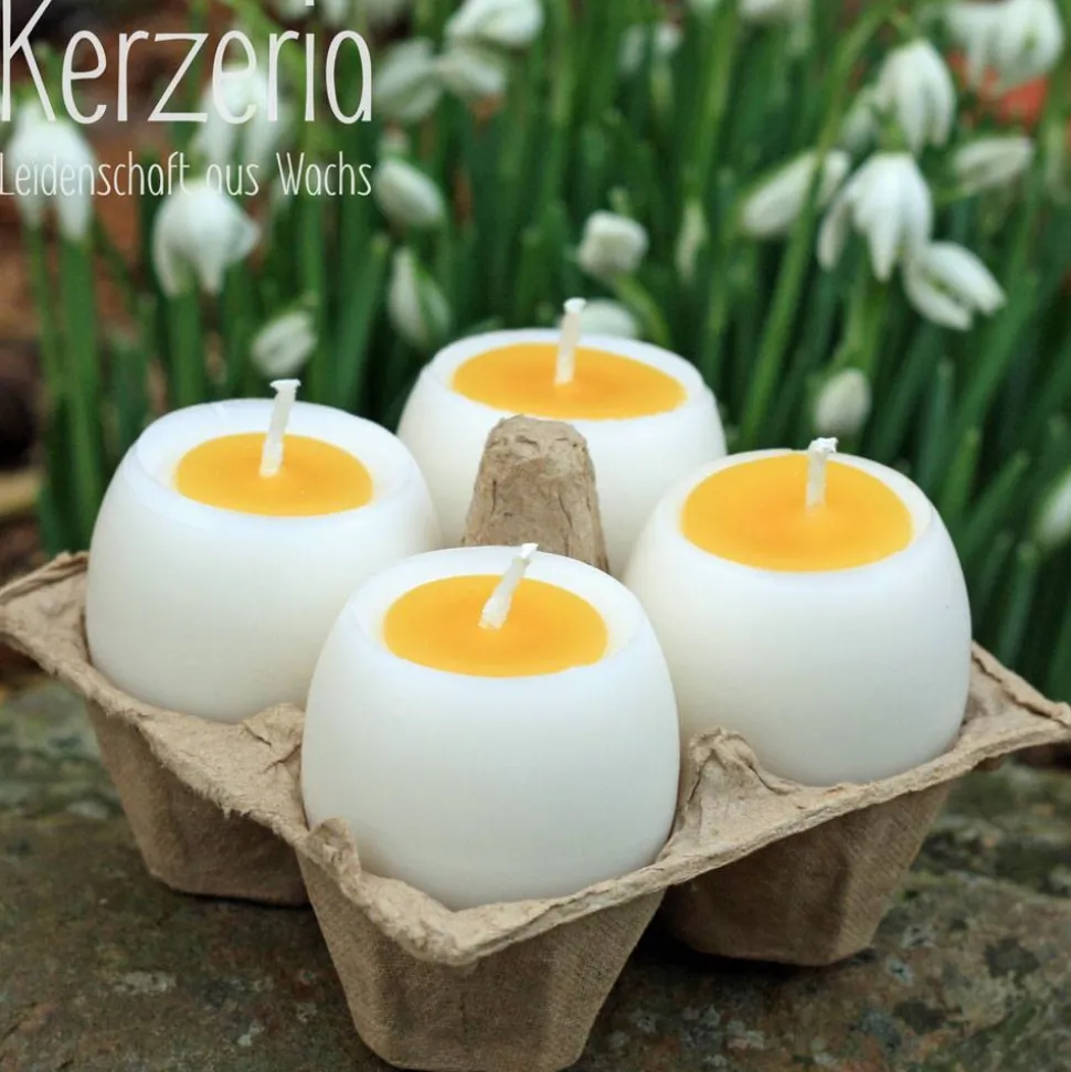 Als Mittelpunkt des Tisches sind die Kerzen in Form eines aufgeschlagenen Eies ein witziger Hingucker.
