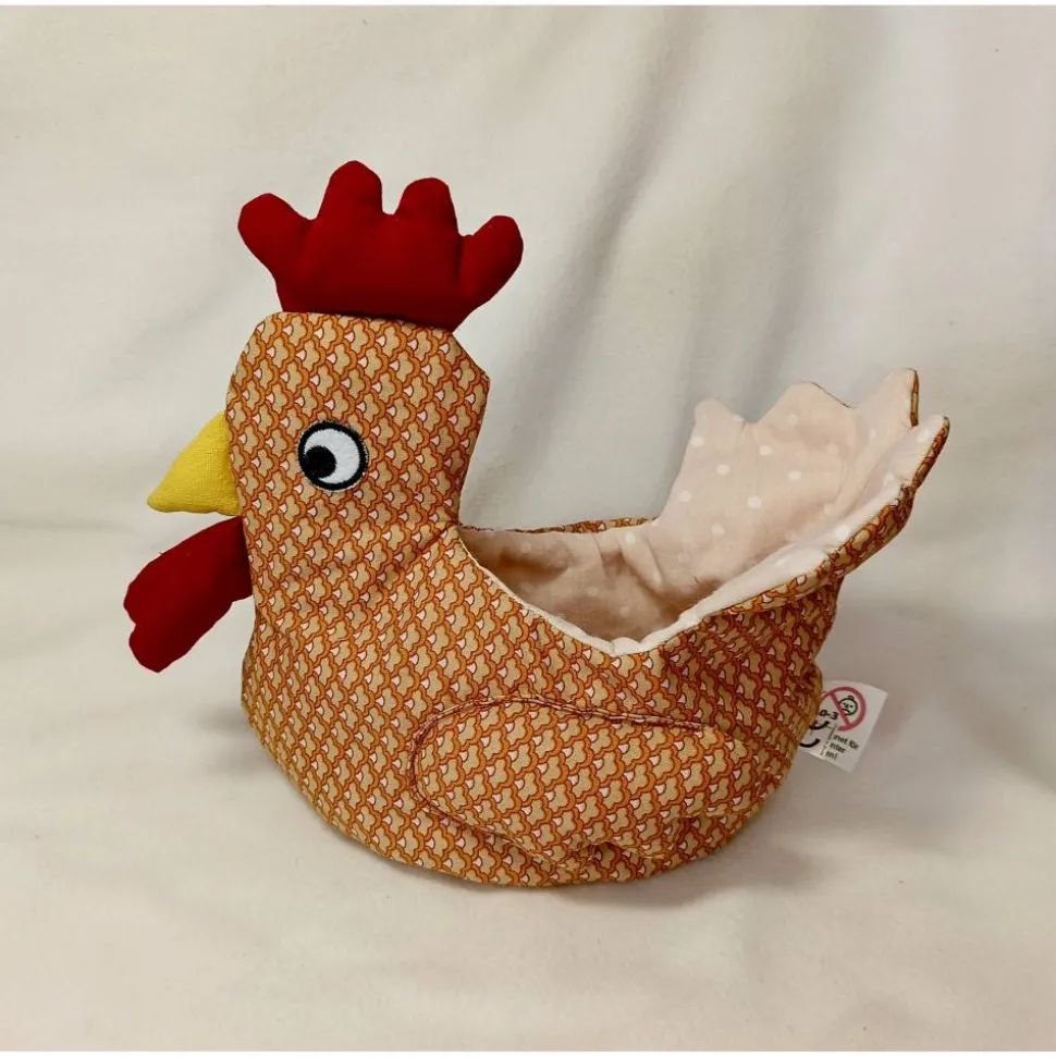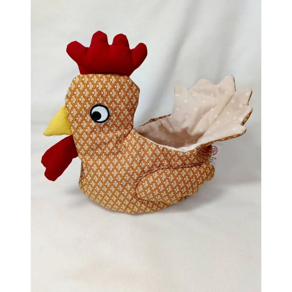 Bitte denken Sie daran,dass das Hühnchen aus Baumwollstoff besteht und nur einfach mit Nähmaschine und von Hand zusammen genäht ist, so wie zu Omas Zeiten. Wilde Spiele hält es daher nicht aus. Es ist eher als Deko Objekt geeignet.