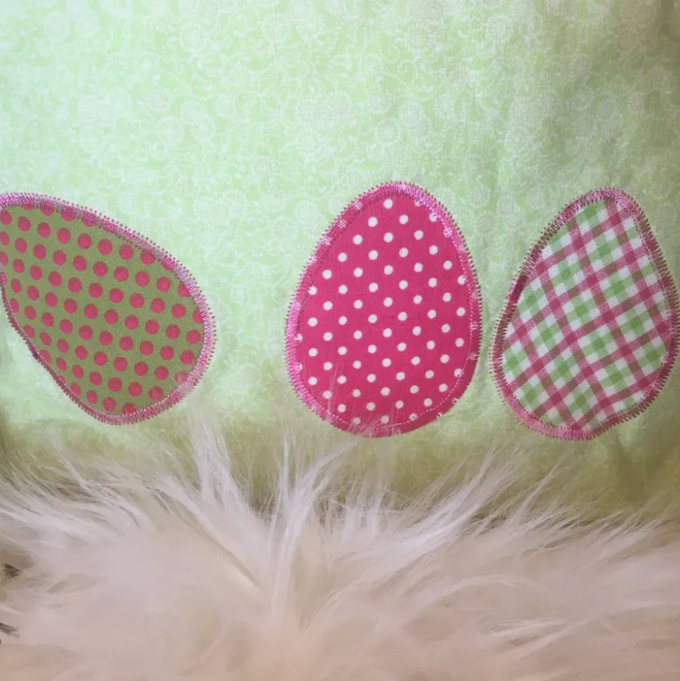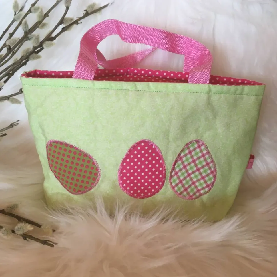 Verziert wurde das Ostertäschchen mit einer Applikation aus passenden Stoffen in Form von Ostereiern.