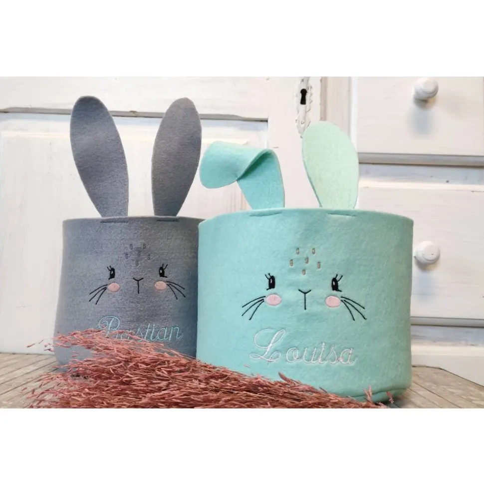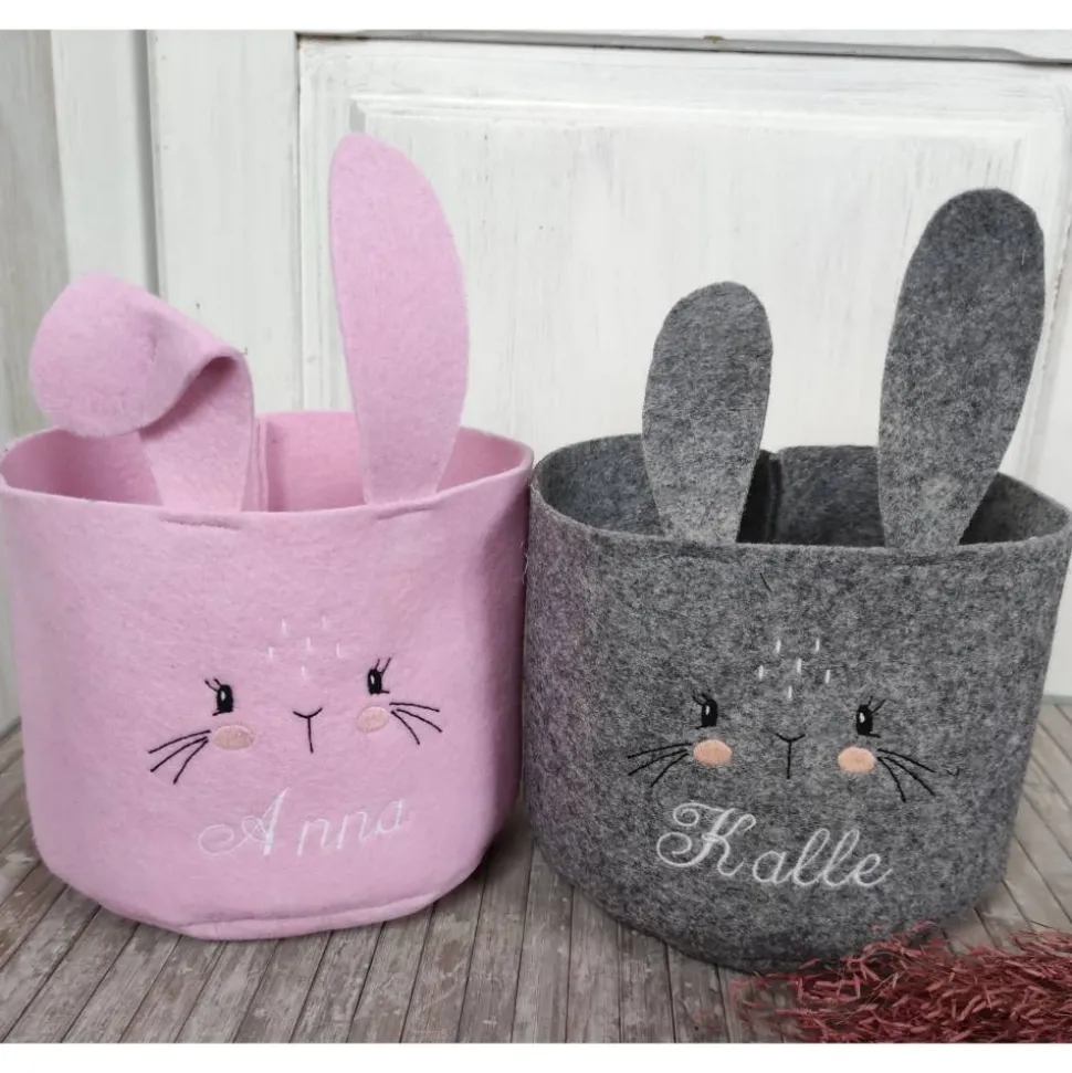 Auf der Suche nach einem Osterkörbchen? Dann seid ihr hier genau richtig. Hier gibt’s die niedlichen Hasenkörbchen mit Namen personalisiert. Die Farbe könnt ihr selbst auswählen