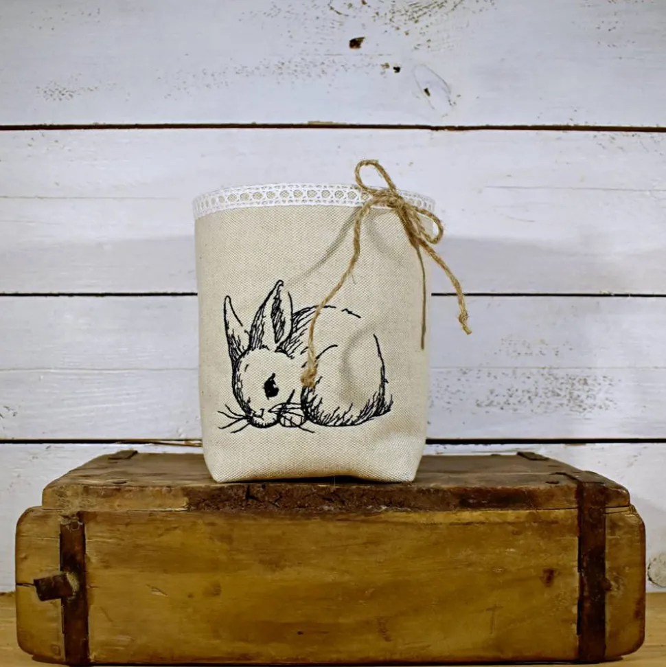 z.B. mit Stroh oder Heu befüllt, für die Ostereier, als Geschenkbeutel, als Überzug für eine Vase / Blumentopf, als Brötchenkorb, …