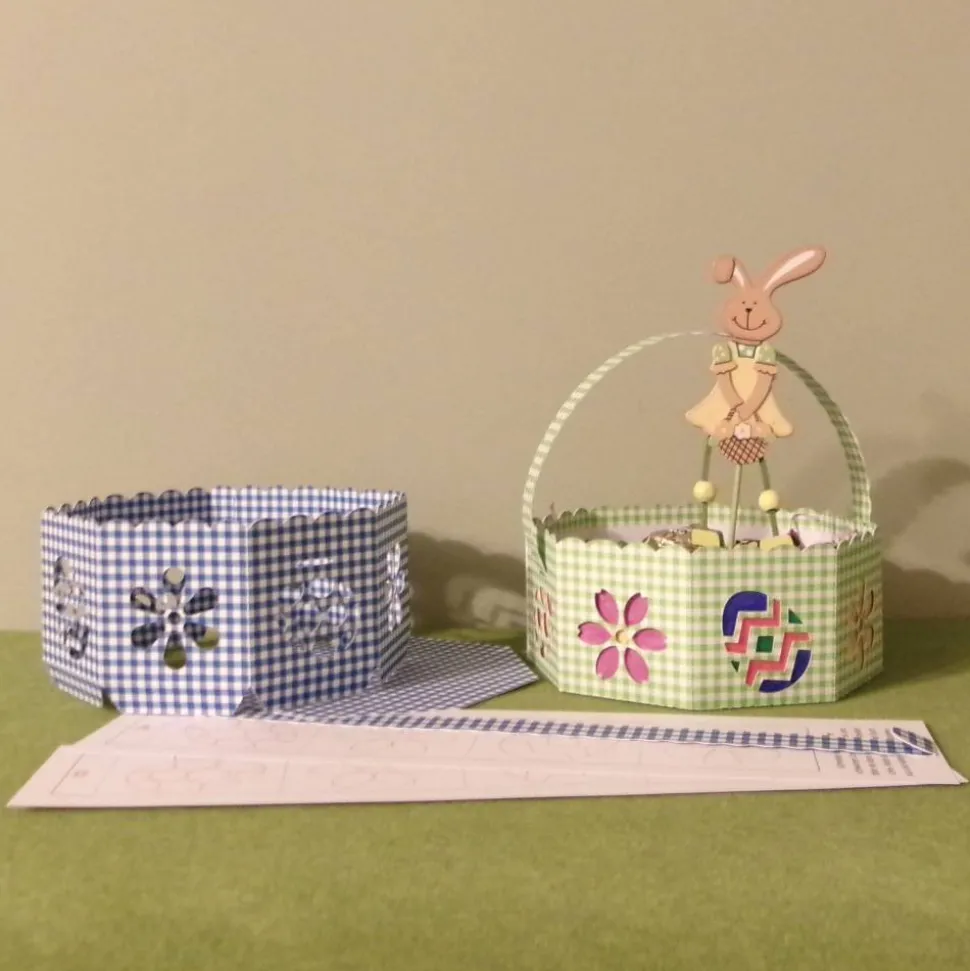 Der Außenkorb ist bereits vorbereitet, es müssen nur noch Boden und Henkel anbracht werden. Mit etwas Hilfe können hiermit auch schon die Kleinsten ihren eigenen Osterkorb basteln.