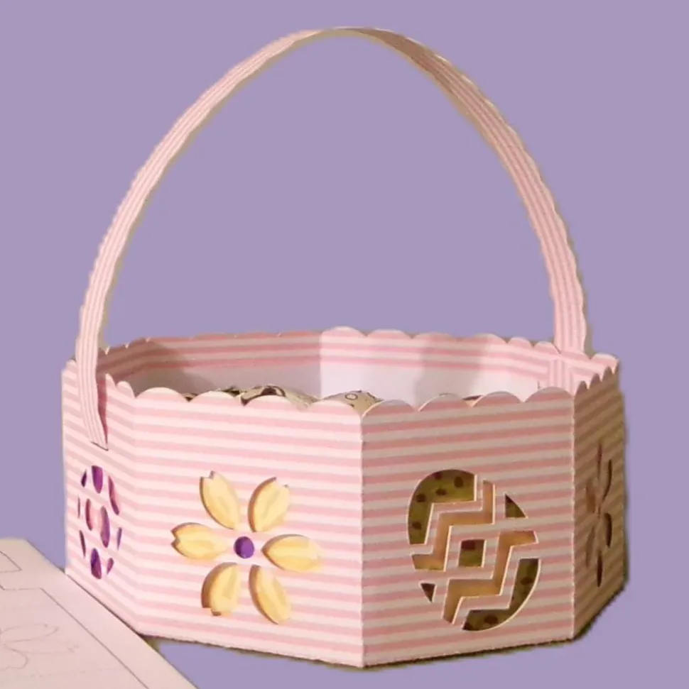 Der Außenkorb ist bereits vorbereitet, es müssen nur noch Boden und Henkel anbracht werden. Mit etwas Hilfe können hiermit auch schon die Kleinsten ihren eigenen Osterkorb basteln.