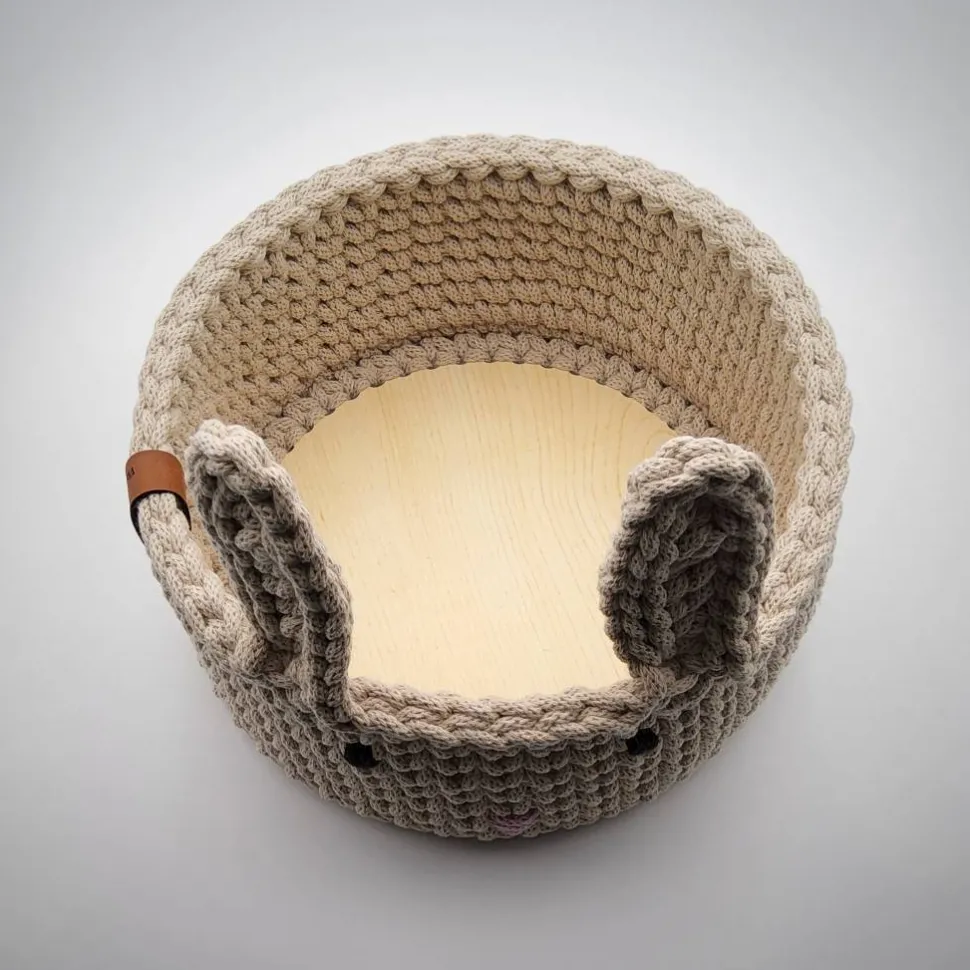 Osterkorb gehäkelt – mit Holzboden & Hasenohren, Ø 20 cm (Artikelnummer: K124):