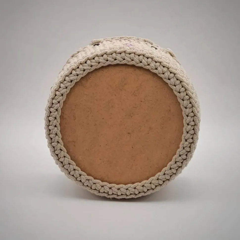 Handgemacht aus robustem Baumwollgarn, mit festem Holzboden für Stabilität und Wiederverwendbarkeit.