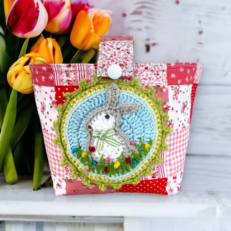 Der kleine Osterkorb wartet nur darauf mit kleinen Leckereien gefüllt zu werden. Die Tasche ist aus aus Baumwollstoff genäht und mit einem Vlies gefüttert. So hat das Utensilo einen guten Stand und kann auch für die Osterdekoration hübsch gefüllt werden. Der Butten ist gehäkelt und gibt dem Osternest den letzten Schliff. Die Henkeltasche macht nicht nur was zu Ostern her. Der Henkel lässt sich abnehmen und so kann das Nest auch als Utensilo auch noch nach den Feiertagen genutzt werden. Oder mit Henkel als kleines Einkaufstasche für Kinder. Somit ein richtiges Multitalent und immer wieder nutzbar.