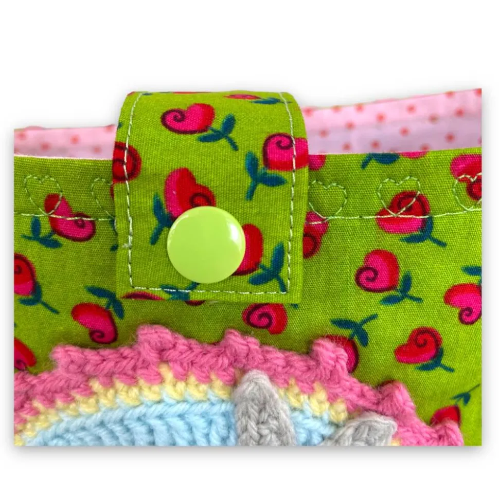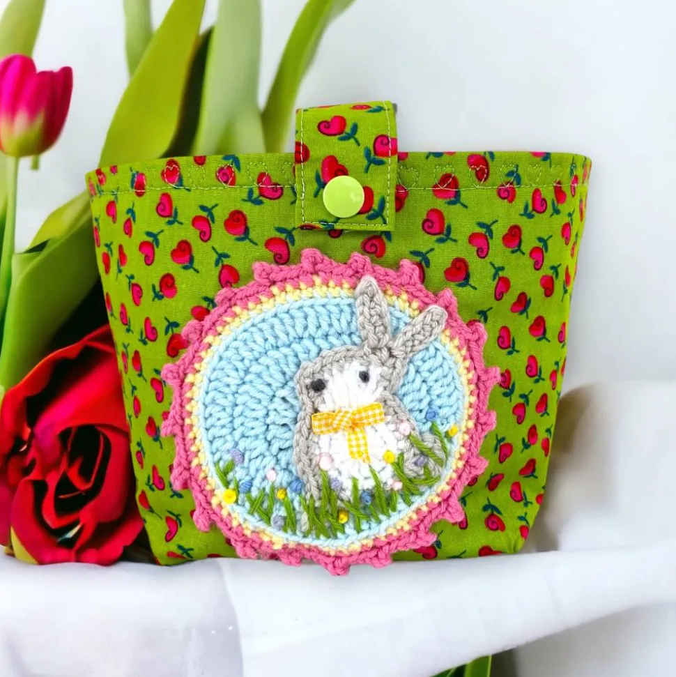Der kleine Osterkorb wartet nur darauf mit kleinen Leckereien gefüllt zu werden. Die Tasche ist aus aus Baumwollstoff genäht und mit einem Vlies gefüttert. So hat das Utensilo einen guten Stand und kann auch für die Osterdekoration hübsch gefüllt werden. Der Butten ist gehäkelt und gibt dem Osternest den letzten Schliff. Die Henkeltasche macht nicht nur was zu Ostern her. Der Henkel lässt sich abnehmen und so kann das Nest auch als Utensilo auch noch nach den Feiertagen genutzt werden. Oder mit Henkel als kleines Einkaufstasche für Kinder. Somit ein richtiges Multitalent und immer wieder nutzbar.