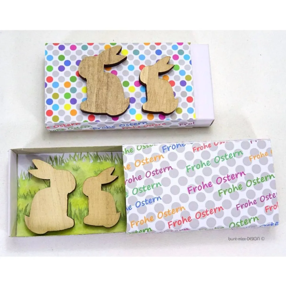 Die Osterhasen aus Holz sind nicht angeklebt, du kannst sie herausnehmen.