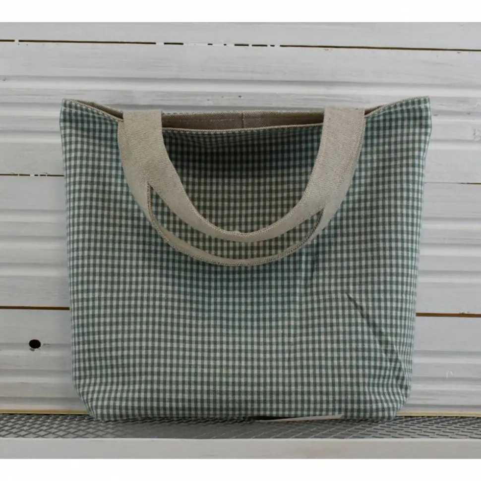 Die Tasche wurde von mir aus robustem grobem beigefarbenen Stoff genäht.