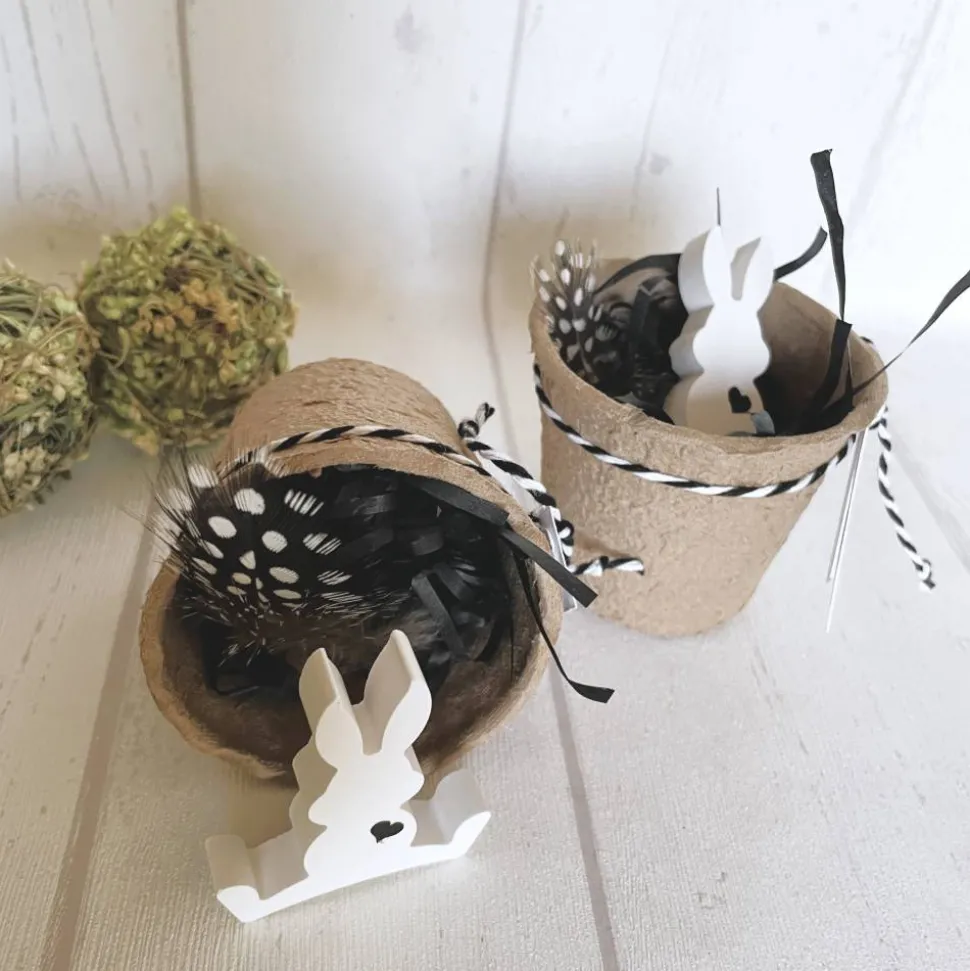 In diesem kleinen Geschenkbecher(5,5x6cm) hat sich ein frecher Osterhase (5×4,5x1cm) mit einer Feder versteckt. Die liebevolle Verpackung beinhaltet noch einen Anhänger. Es wird nur EIN Becher mit Inhalt in Folie verpackt geliefert.