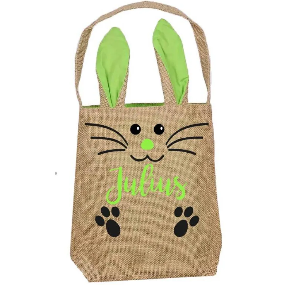 Häschen-Gesicht, Füßchen und Wunschtext werden mit kuschelig weichem Flockdruck auf die Tasche gedruckt. Du kannst deine Tasche entweder mit einem Namen personalisieren lassen oder mit einem Text/Spruch, wie z.B. „Für Hasi“ oder „Lieblingshase“. Die Tasche bietet genügend Platz für Süßigkeiten und kleine Geschenke.