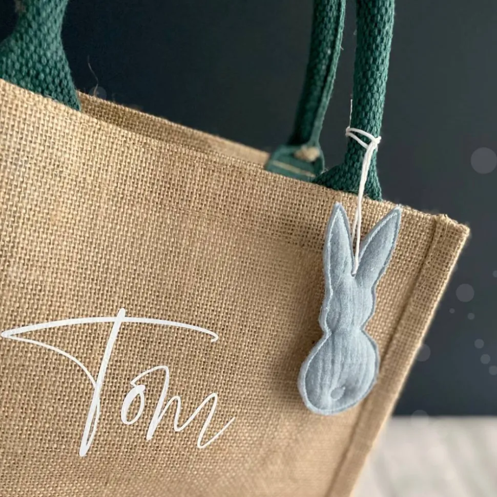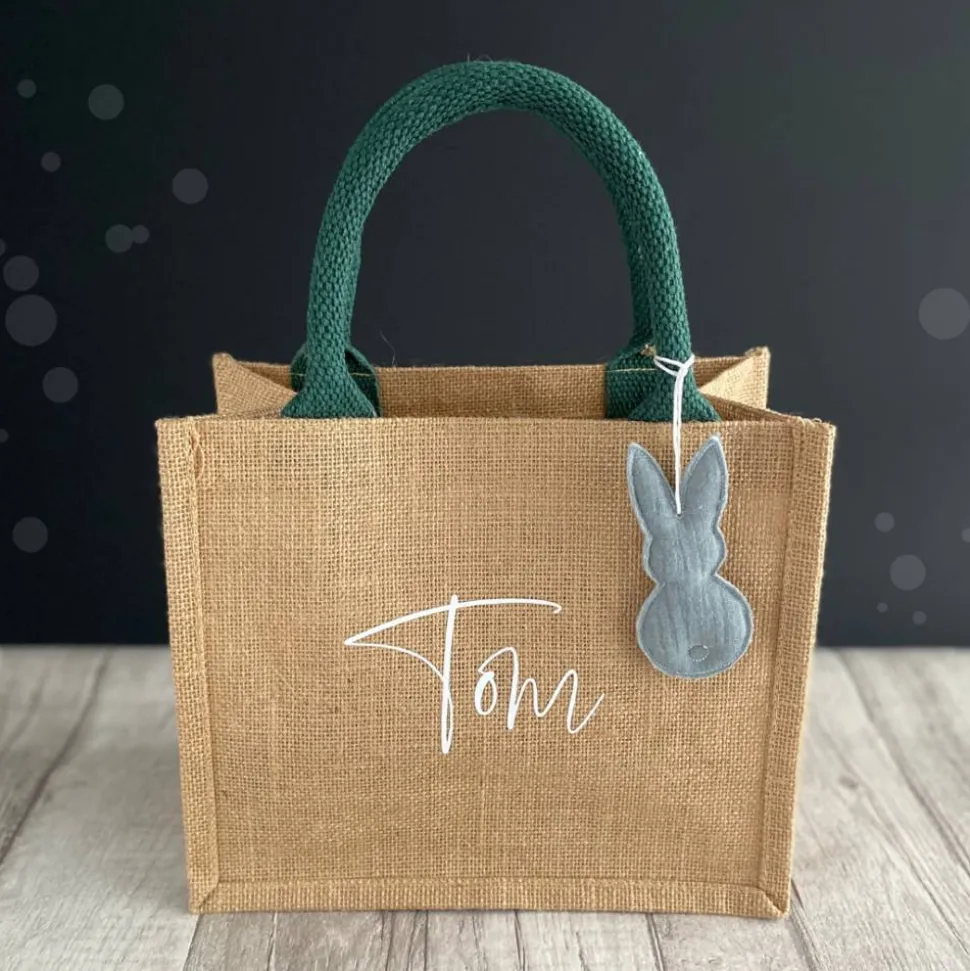 Mit allerlei lieben Kleinigkeiten gefüllt eignet sich das Täschchen perfekt als Ostergeschenk und danach als kleine Einkaufstasche zum Kaufladen, als Picknickkörbchen oder für den Kindergarten. Es ist natürlich, nachhaltig, robust und durch Deinen Wunschaufdruck unverwechselbar.