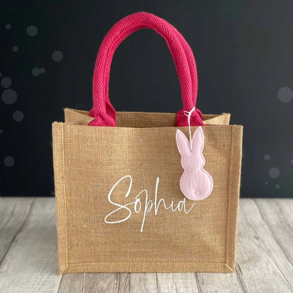 Mit allerlei lieben Kleinigkeiten gefüllt eignet sich das Täschchen perfekt als Ostergeschenk und danach als kleine Einkaufstasche zum Kaufladen, als Picknickkörbchen oder für den Kindergarten. Es ist natürlich, nachhaltig, robust und durch Deinen Wunschaufdruck unverwechselbar.