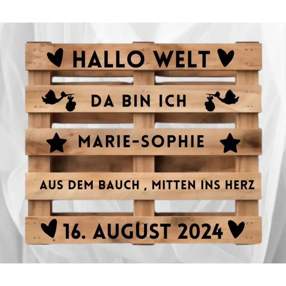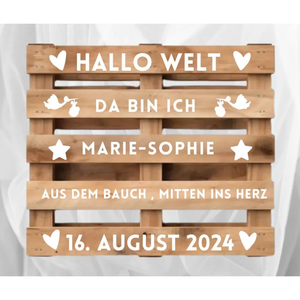 Produktname: Palettenaufkleber Geburt Hallo Welt