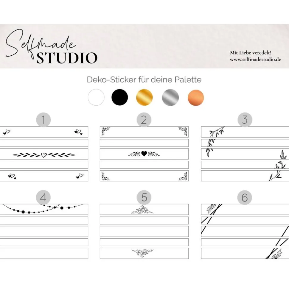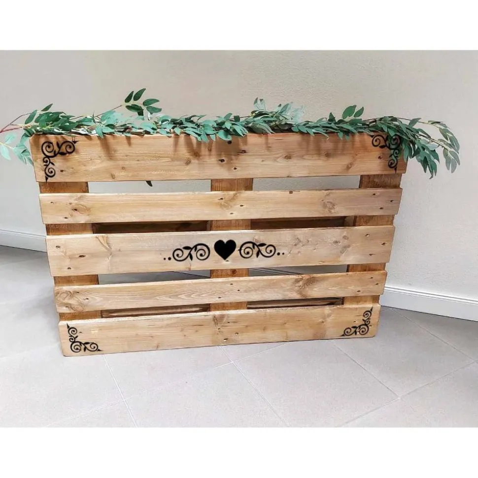 Verwandle deine Hochzeitspaletten in echte Hingucker! Mit unseren Palettenaufklebern in 6 liebevoll gestalteten Designs dekorierst du jede Euro-Palette stilvoll als Hochzeitsschild oder individuelles Deko-Element. Wähle aus den Schriftfarben Weiß, Schwarz, Silber, Gold oder Kupfer und finde das perfekte Motiv für deinen Anlass. Die Aufkleber werden aus professioneller, polymerer Hochleistungs-PVC-Folie gefertigt und bieten dank permanentem Klebstoff auf Lösemittelbasis eine hohe Endhaftung für den Innen- und Außenbereich.