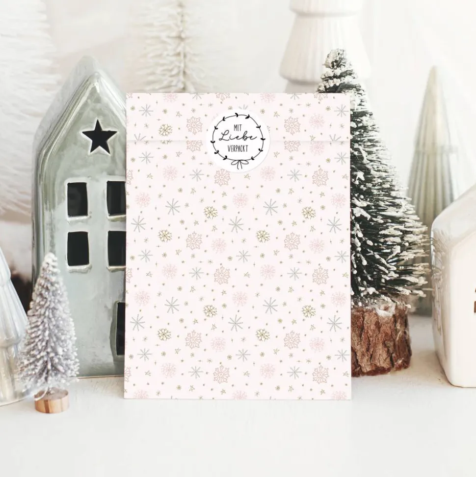 Papiertüten Set *Blush Sage Christmas* / Motiv 3 / Flachbeutel in verschiedenen Größen für Advent und Weihnachten