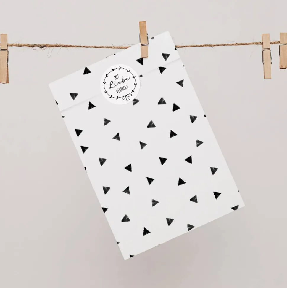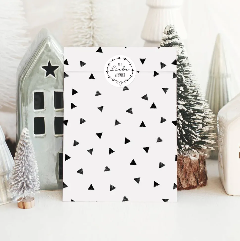 Papiertüten sind eine praktische Verpackung für Geschenke, Geschenkgutscheine, kleine Mitbringsel, Aufmerksamkeiten und Leckereien. Diese umweltfreundlichen Geschenktüten mit einem schlichten Muster in schwarz-weiß sind von hoher Qualität und eignen sich perfekt als Geschenkverpackung zum Beispiel für Geburtstage, Advent, Weihnachten und anderen Anlässen. Zusammen mit unseren Zahlenaufklebern lässt sich schnell und einfach ein Adventskalender gestalten.