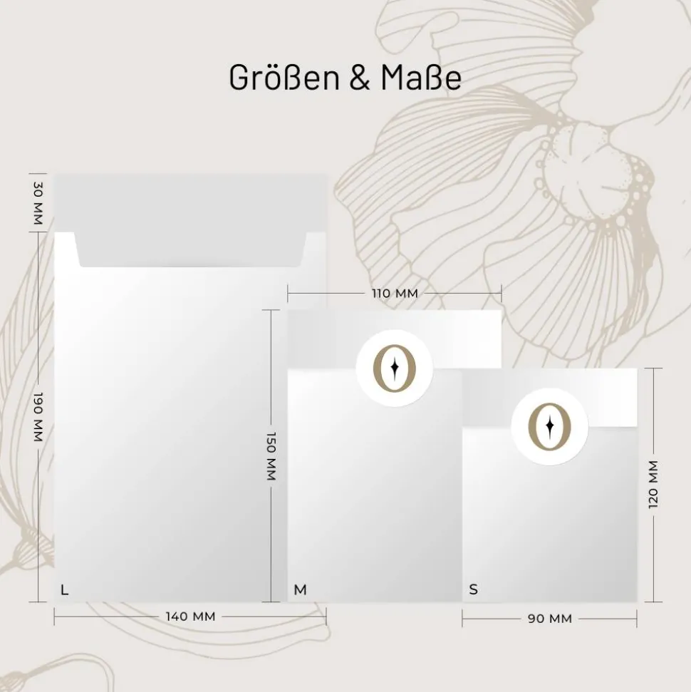 Die Flachbeutel sind in 3 Größen und für einen schnellen und sicheren Verschluss optional mit Haftverschluss erhältlich. Mit unseren Geschenkaufklebern lassen sich die Geschenktüten hingegen dekorativ verschließen. Diese sind separat in verschiedenen Ausführungen und Größen in unserem Shop erhältlich.