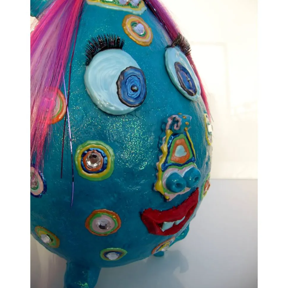 Handgefertigtes Deko-Ei aus Pappmachè, mit Acrylfarben und Glitzersteinen gestaltet, witziges Künstler-Ei der etwas anderen Art!