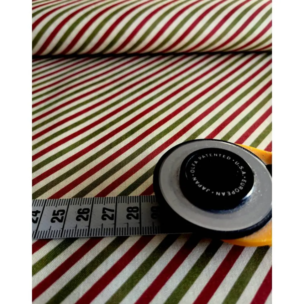 - Gestreifter Stoff in klassischen Weihnachtsfarben