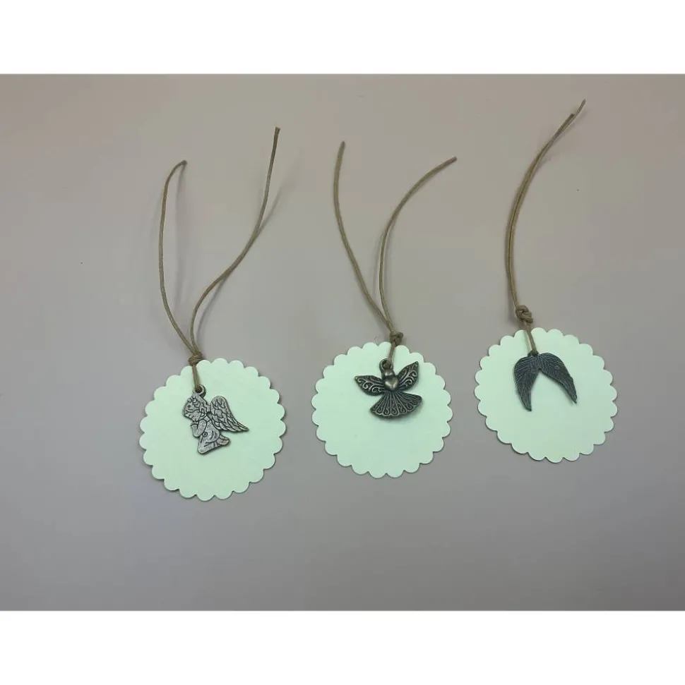 Verzierung des Kartondeckels mit Schlaufe und Metallanhänger Engel/Flügel